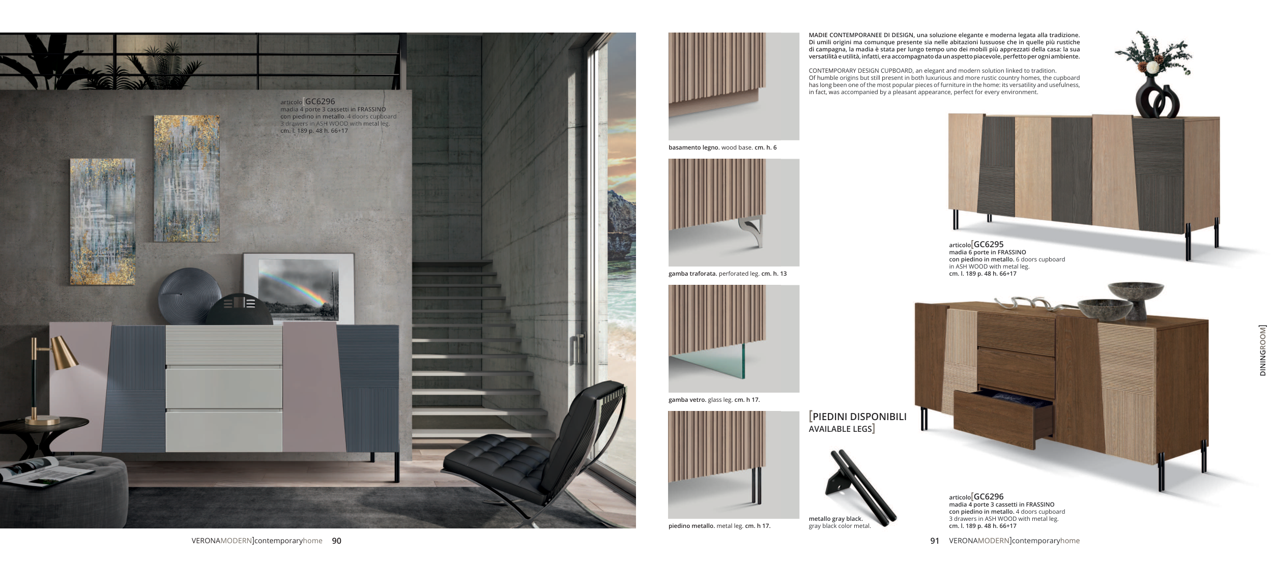 con piedino in metallo. 6 doors cupboard