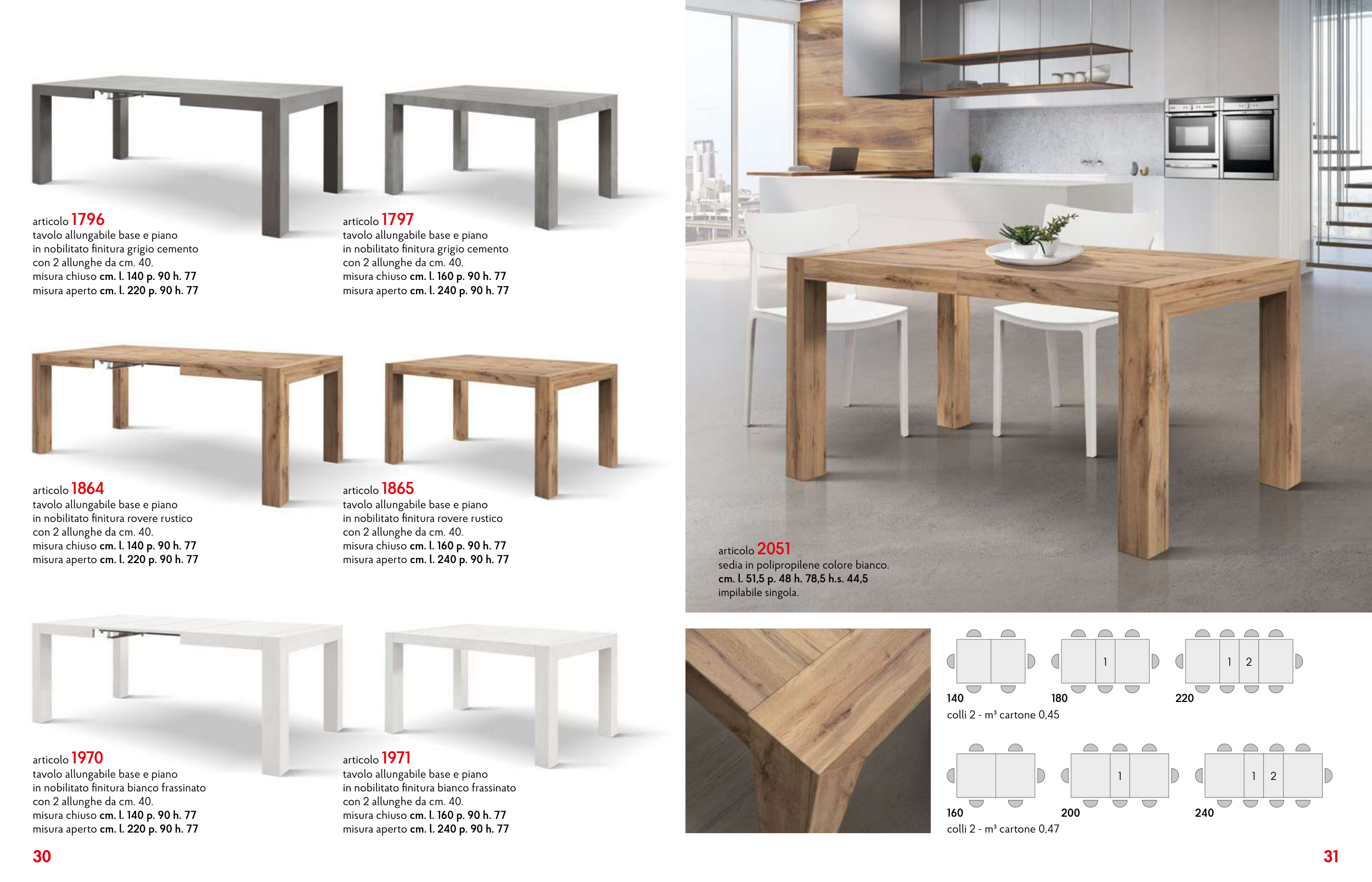 con 2 allunghe da cm. 40.
