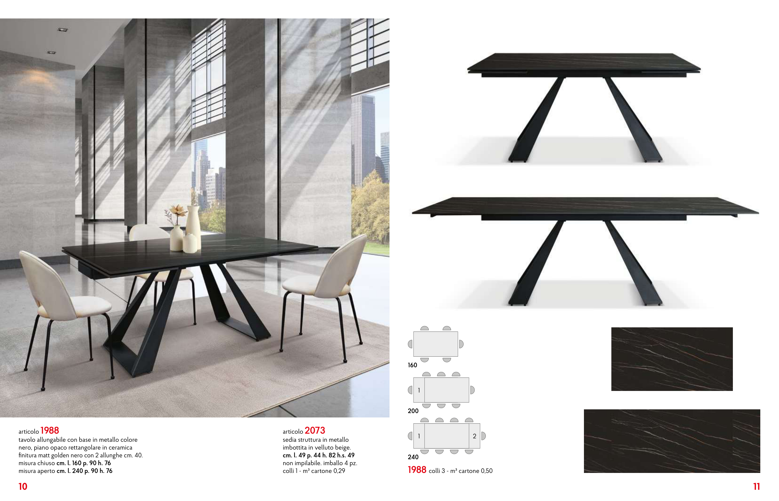 misura aperto cm. l. 240 p. 90 h. 76