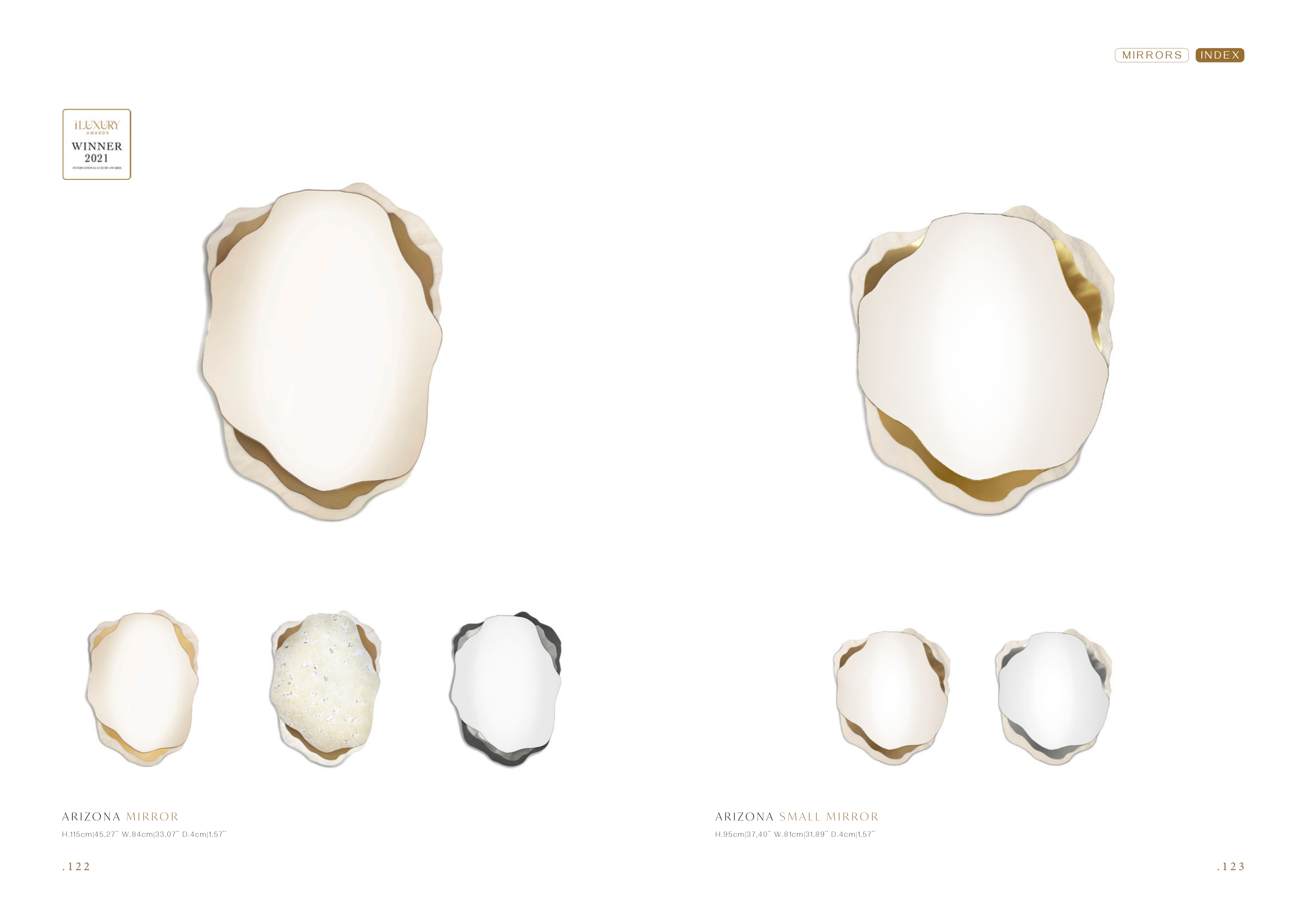 . 1 2 3 . 1 2 2 H.115cm|45,27’’ W.84cm|33,07’’ D.4cm|1,57’’ A R I Z O N A M I R R O R H.95cm|37,40’’ W.81cm|31,89’’ D.4cm|1,57’’ A R I Z O N A S M A L L M I R R O R I N D E X M I R R O R S