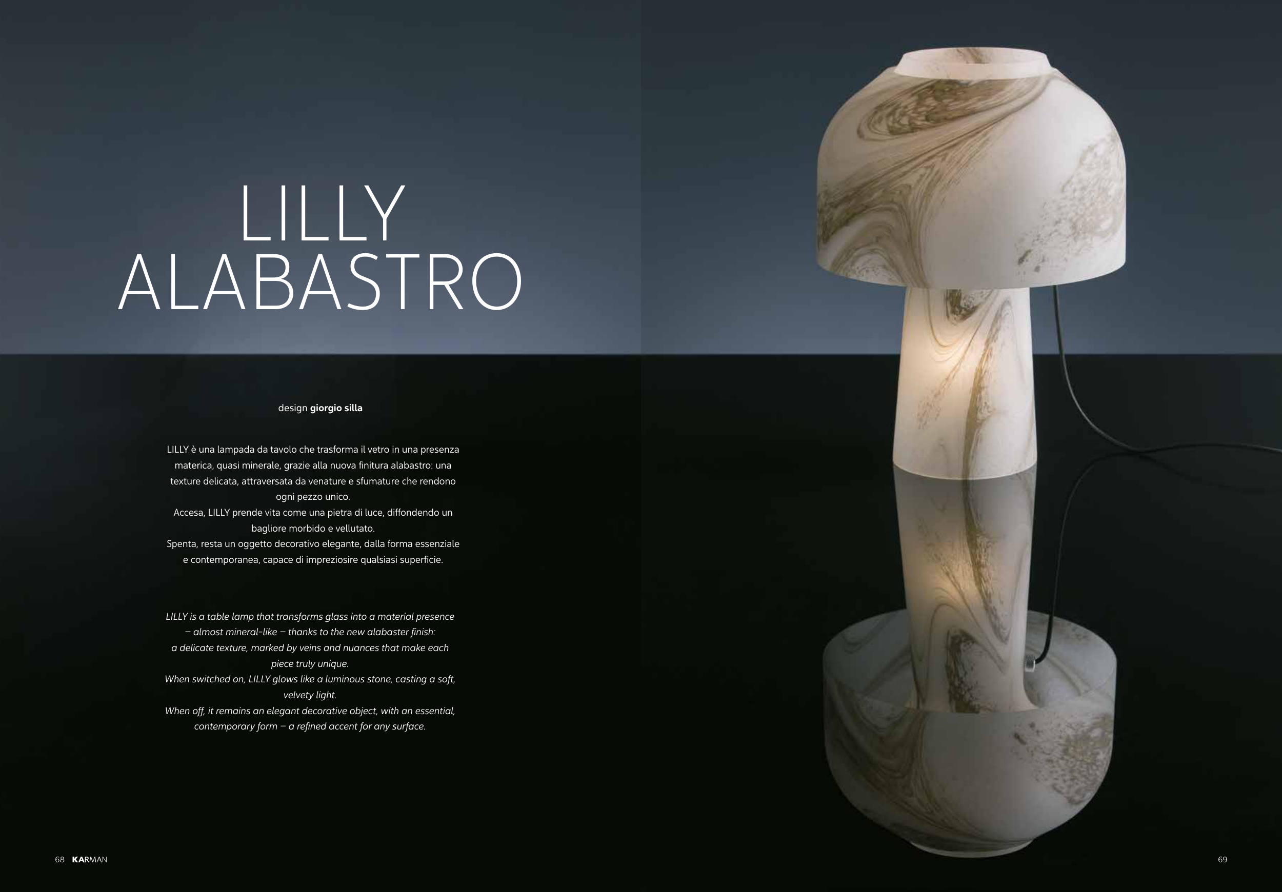 LILLY is a table lamp that transforms glass into a material presence