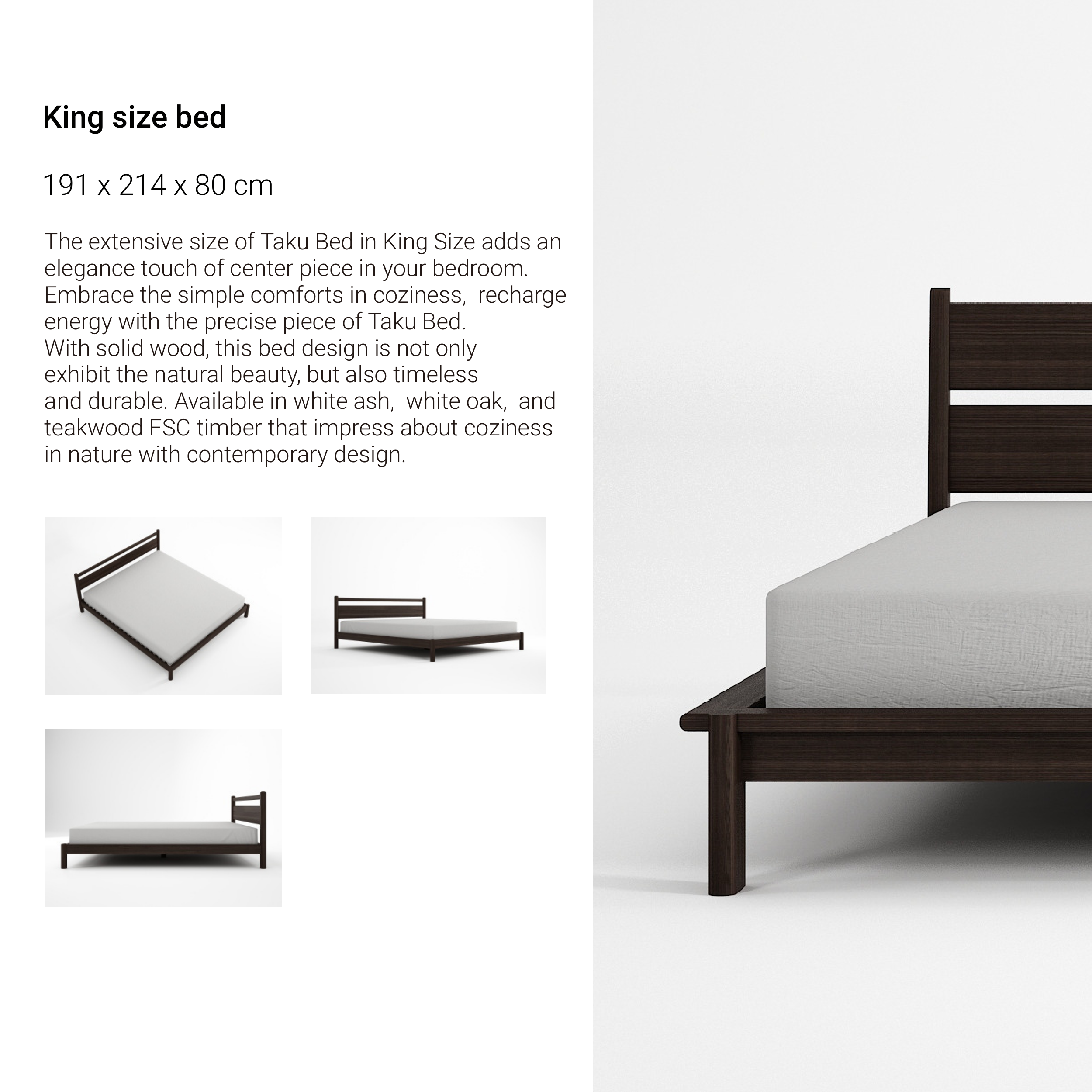 The extensive size of Taku Bed in King Size adds an