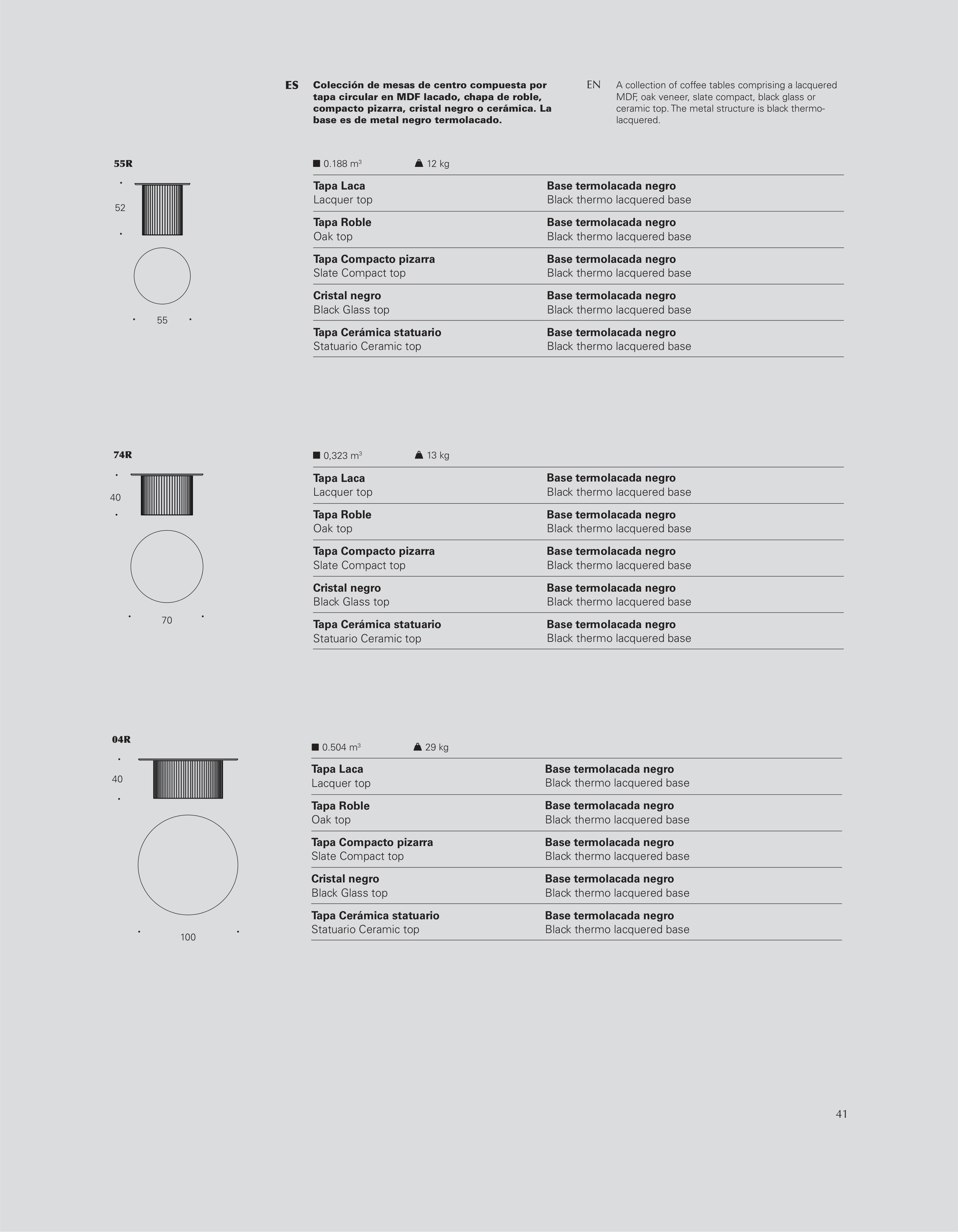A collection of coffee tables comprising a lacquered