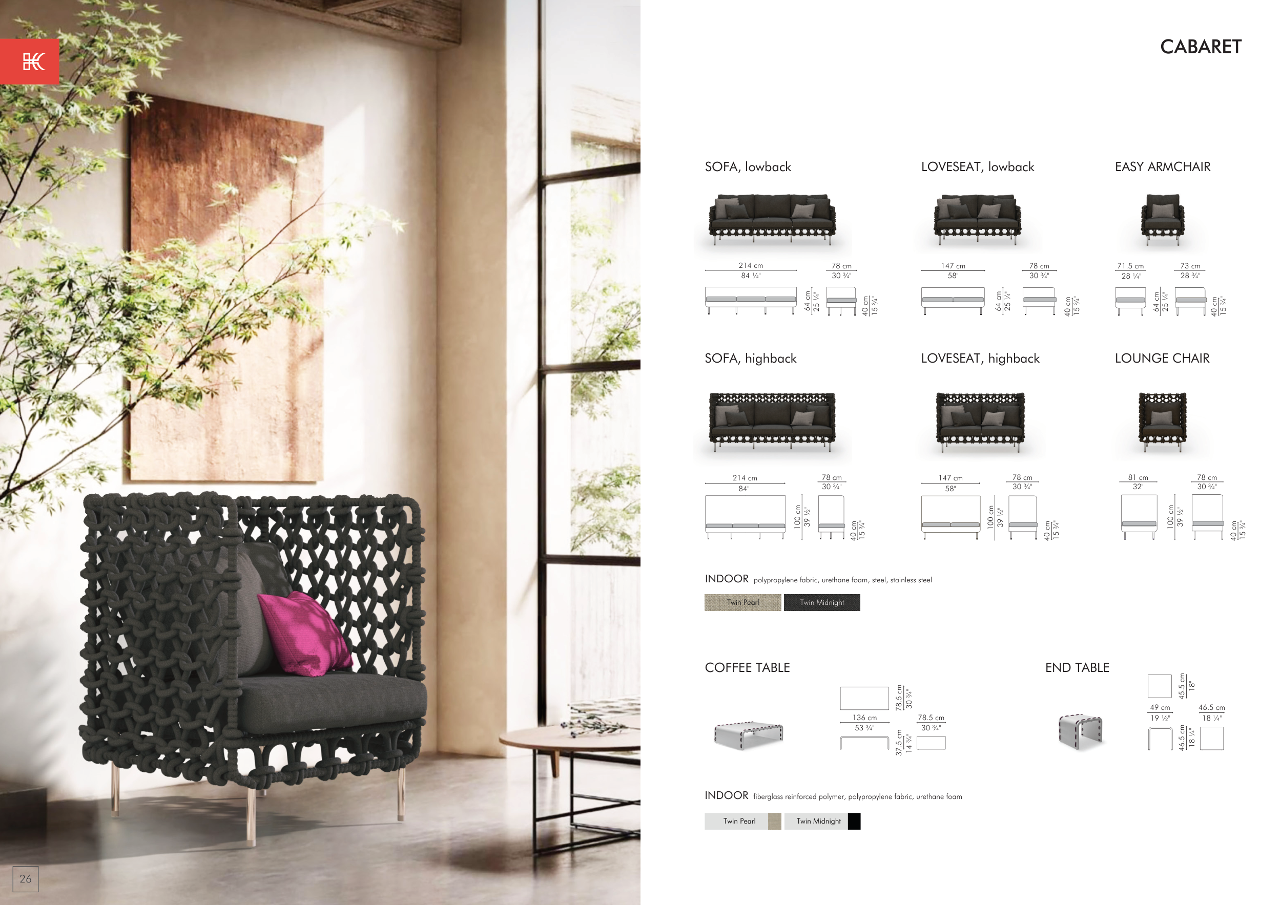 INDOOR polypropylene fabric, urethane foam, steel, stainless steel