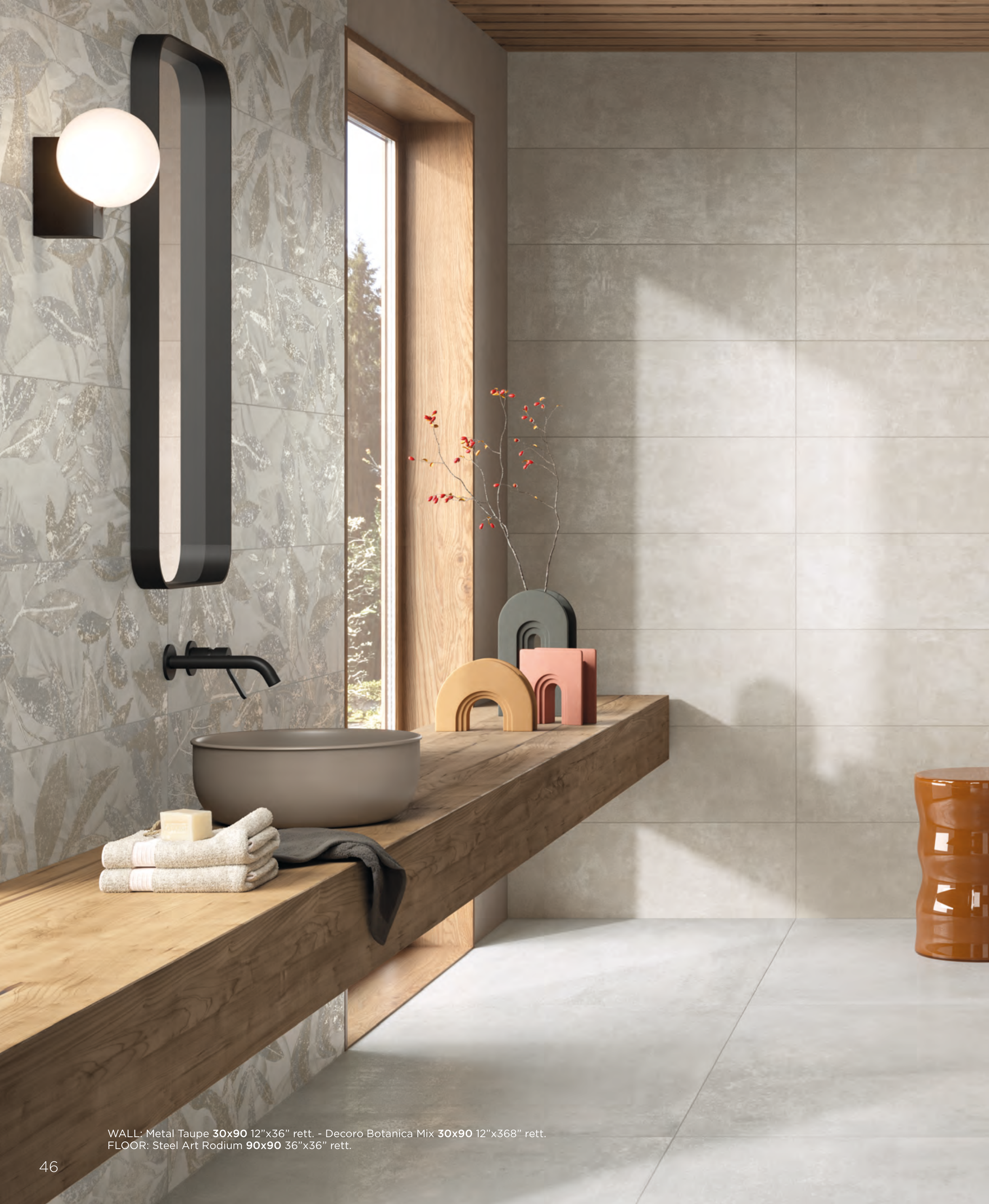 WALL: Metal Taupe 30x90 12”x36” rett. - Decoro Botanica Mix 30x90 12”x368” rett.