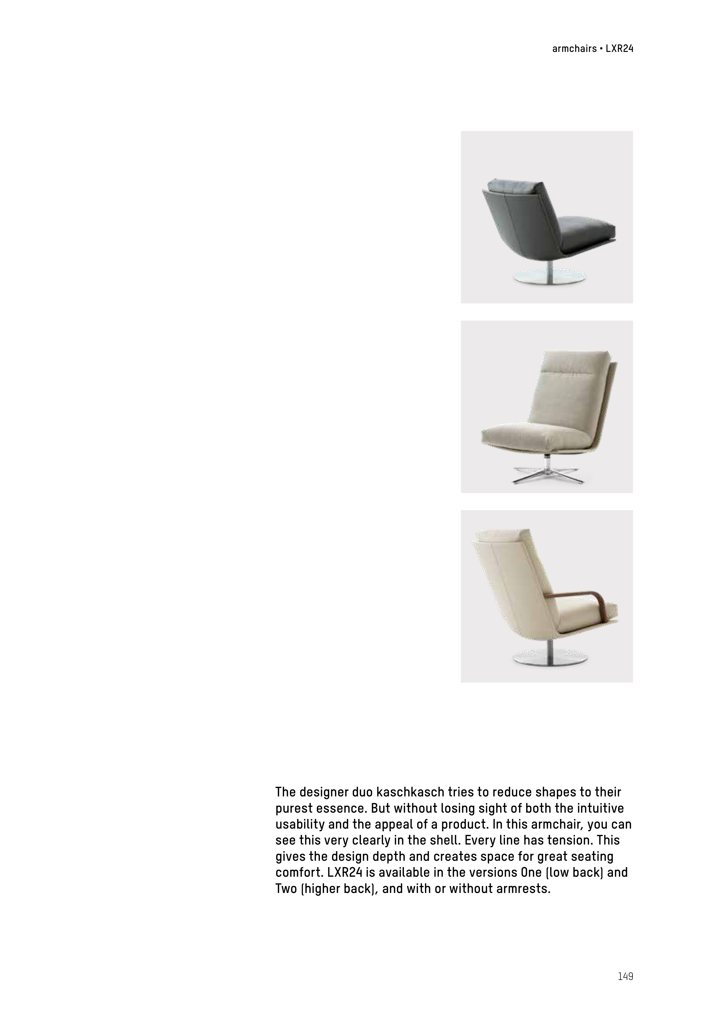 comfort. LXR24 is available in the versions One (low back) and