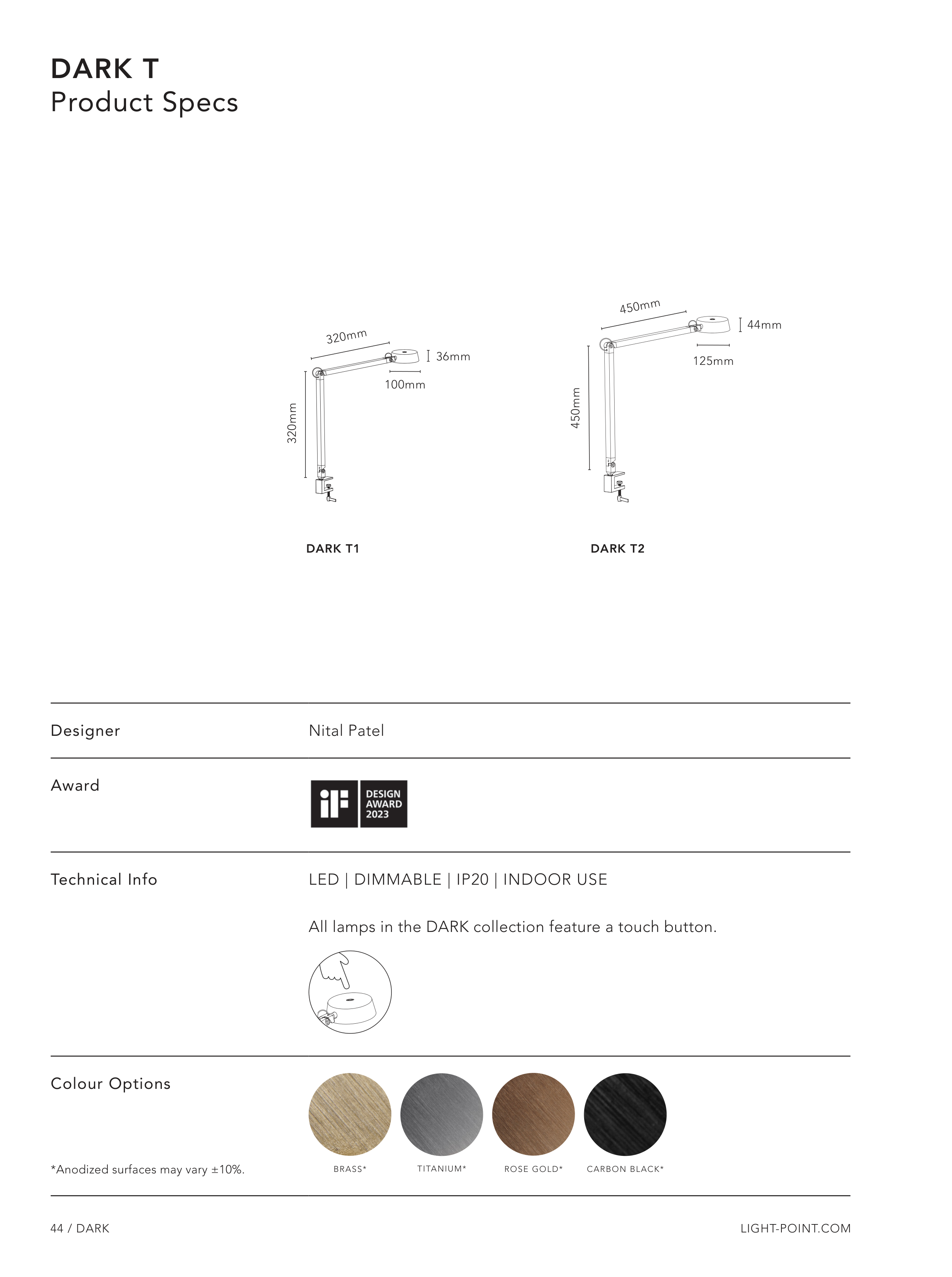 All lamps in the DARK collection feature a touch button.