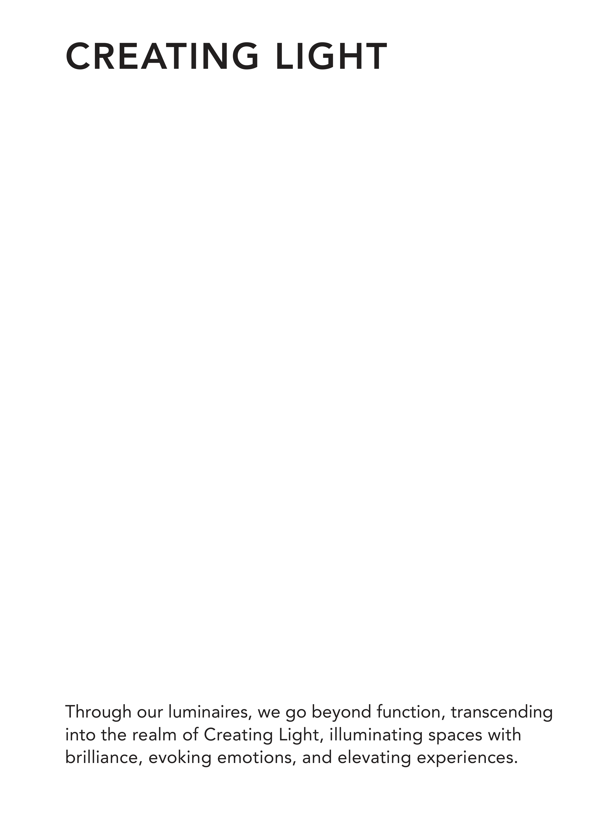 CREATING LIGHT Through our luminaires, we go beyond function, transcending into the realm of Creating Light, illuminating spaces with brilliance, evoking emotions, and elevating experiences.