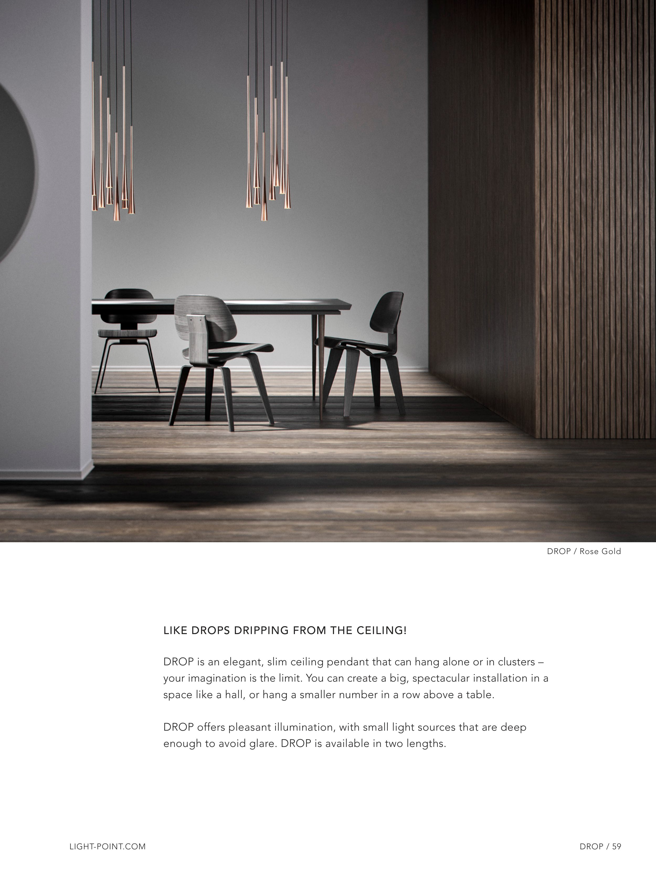 DROP is an elegant, slim ceiling pendant that can hang alone or in clusters –
