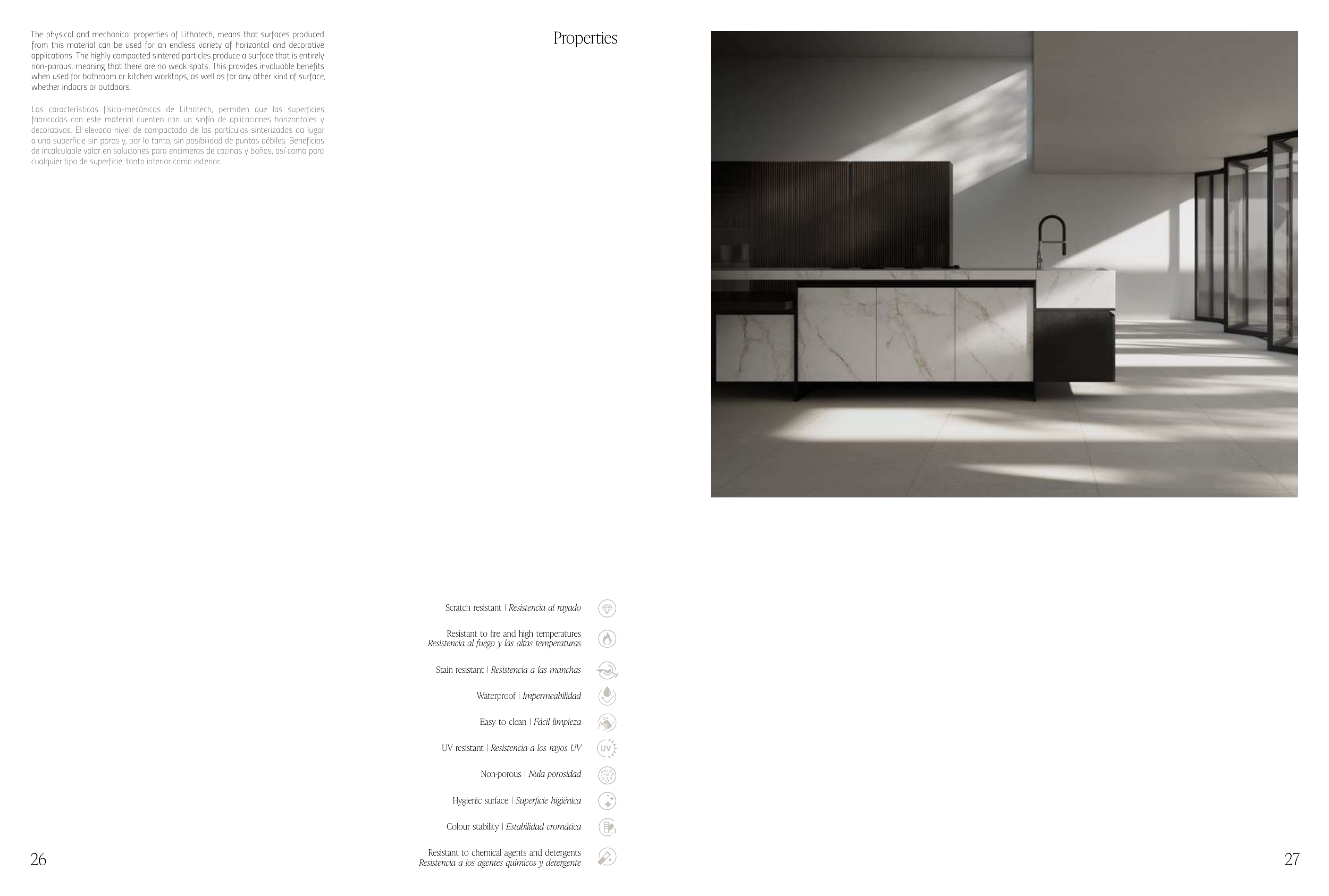 Las características físico-mecánicas de Lithotech, permiten que las superficies