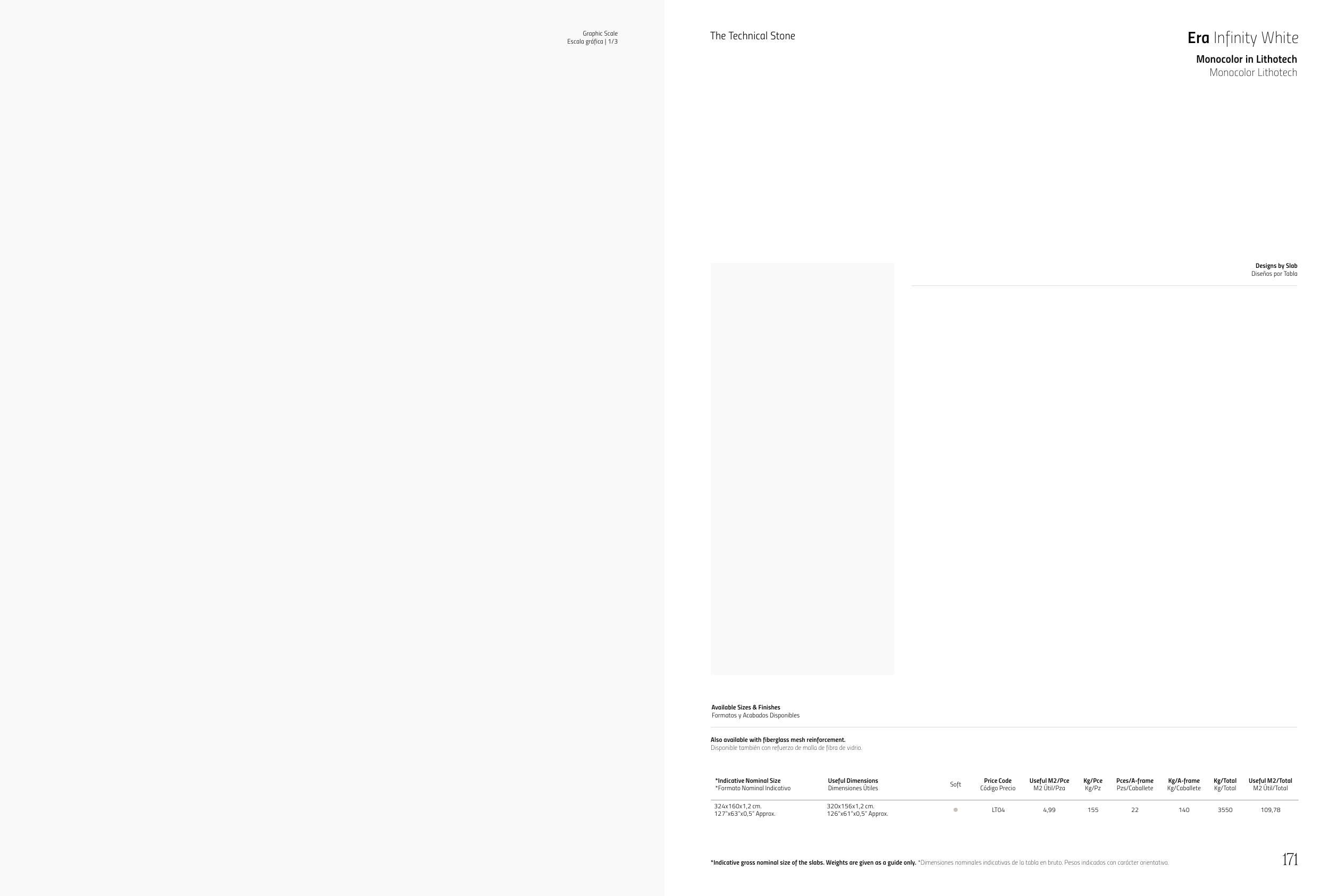 *Indicative gross nominal size of the slabs. Weights are given as a guide only. *Dimensiones nominales indicativas de la tabla en bruto. Pesos indicados con carácter orientativo.