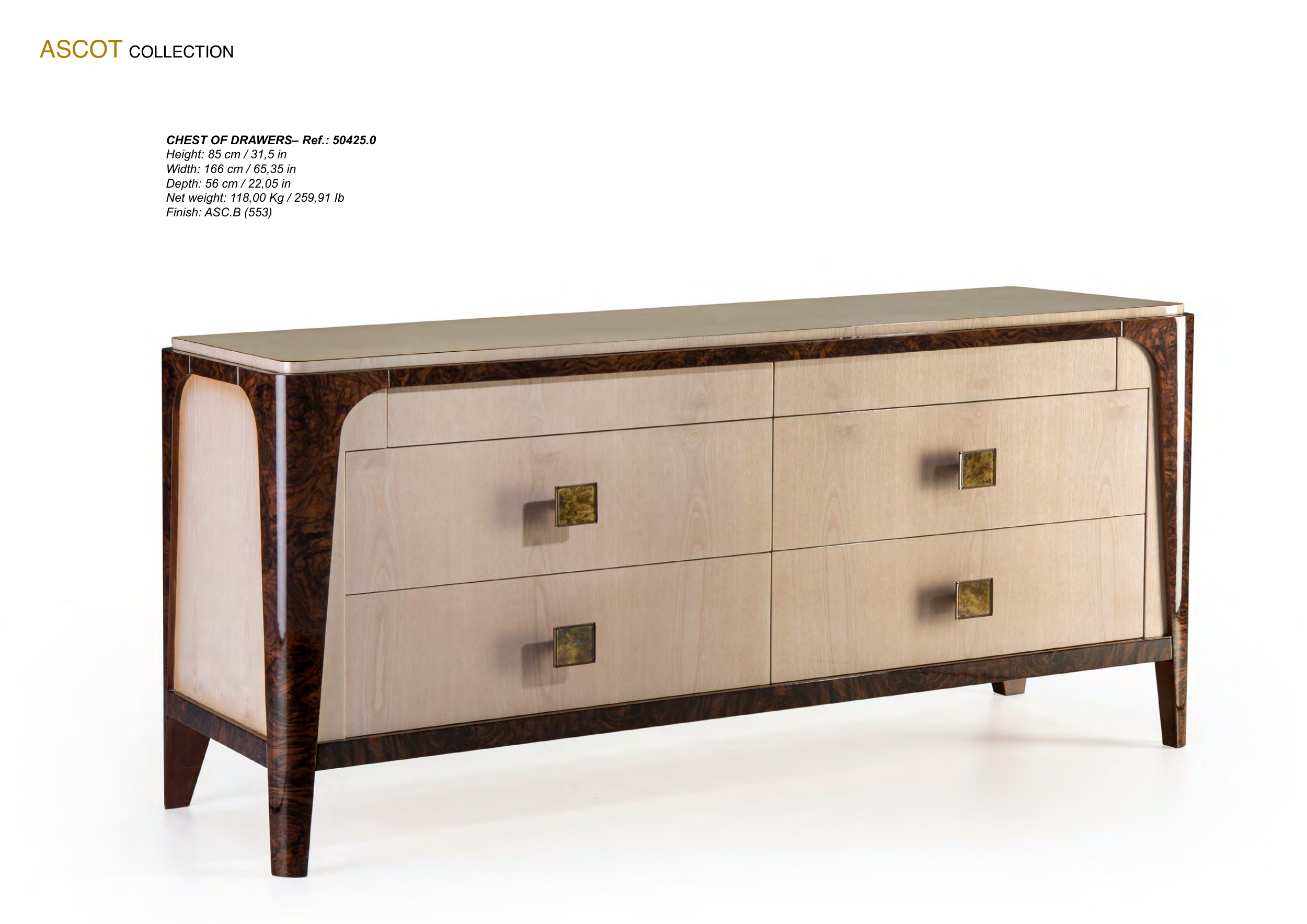 164 MARINER MARINER 165 ASCOT COLLECTION CHEST OF DRAWERS– Ref.: 50425.0 Height: 85 cm / 31,5 in Width: 166 cm / 65,35 in Depth: 56 cm / 22,05 in Net weight: 118,00 Kg / 259,91 Ib Finish: ASC.B (553)