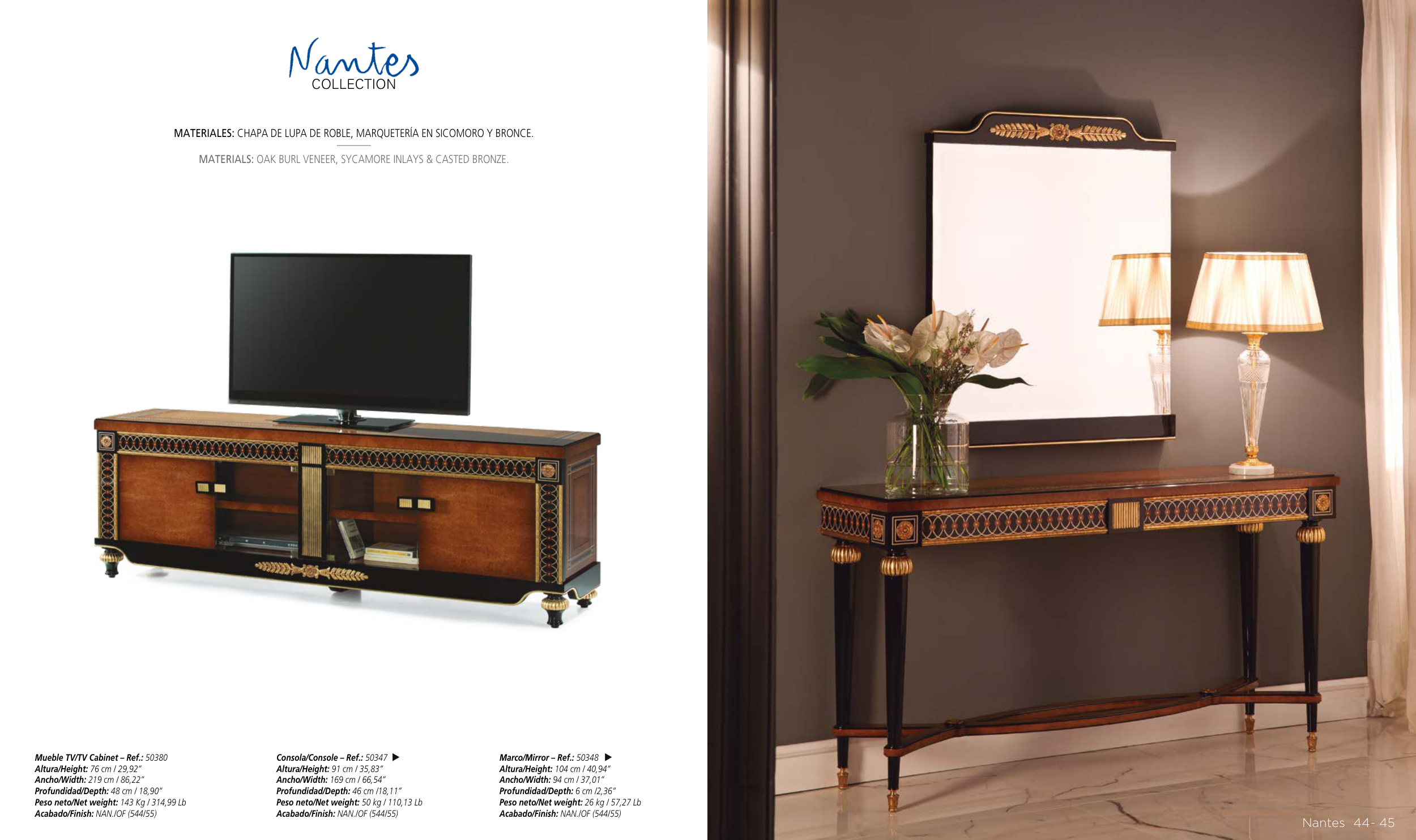 MATERIALES: CHAPA DE LUPA DE ROBLE, MARQUETERÍA EN SICOMORO Y BRONCE.