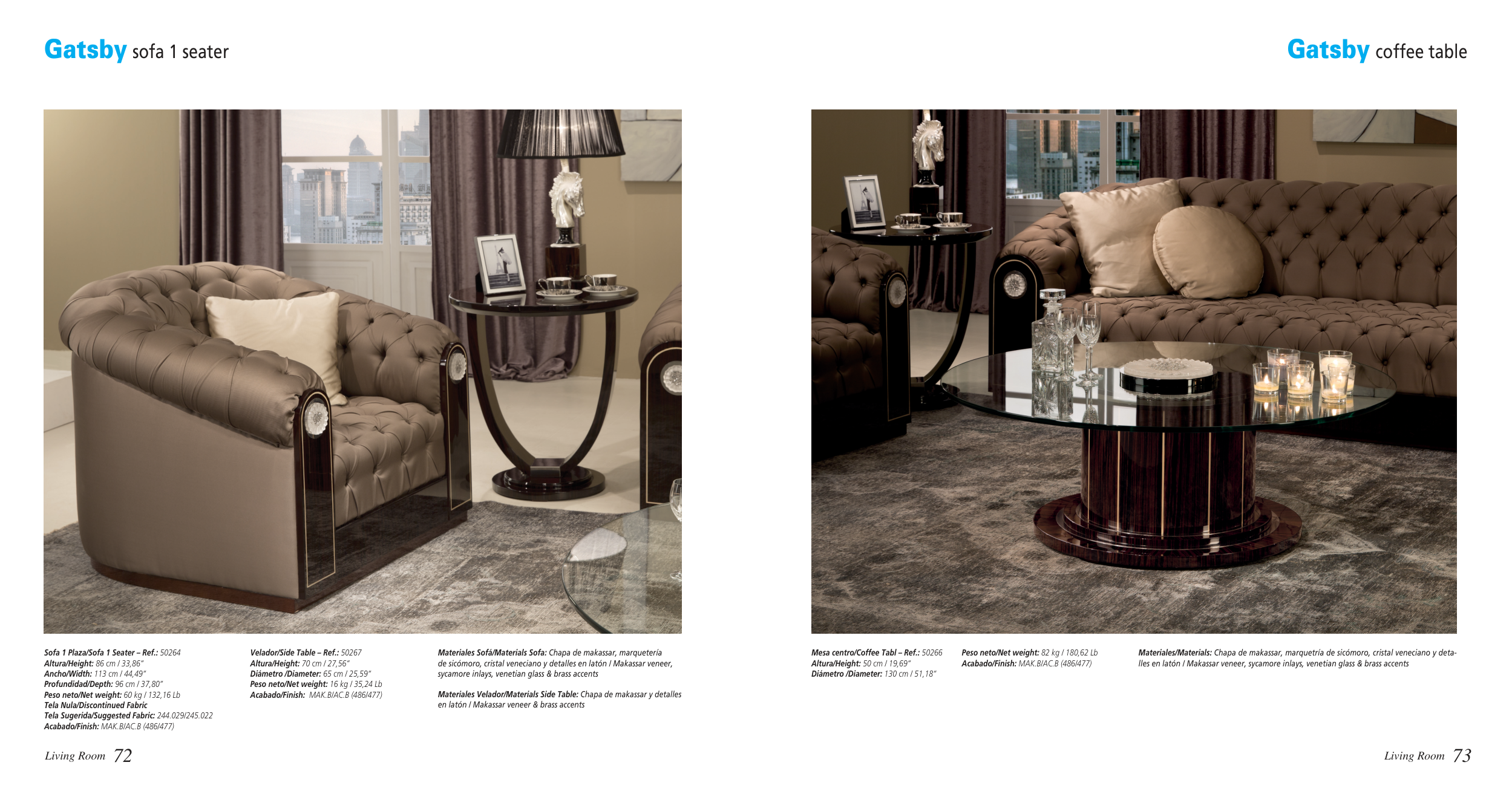 de sicómoro, cristal veneciano y detalles en latón / Makassar veneer,