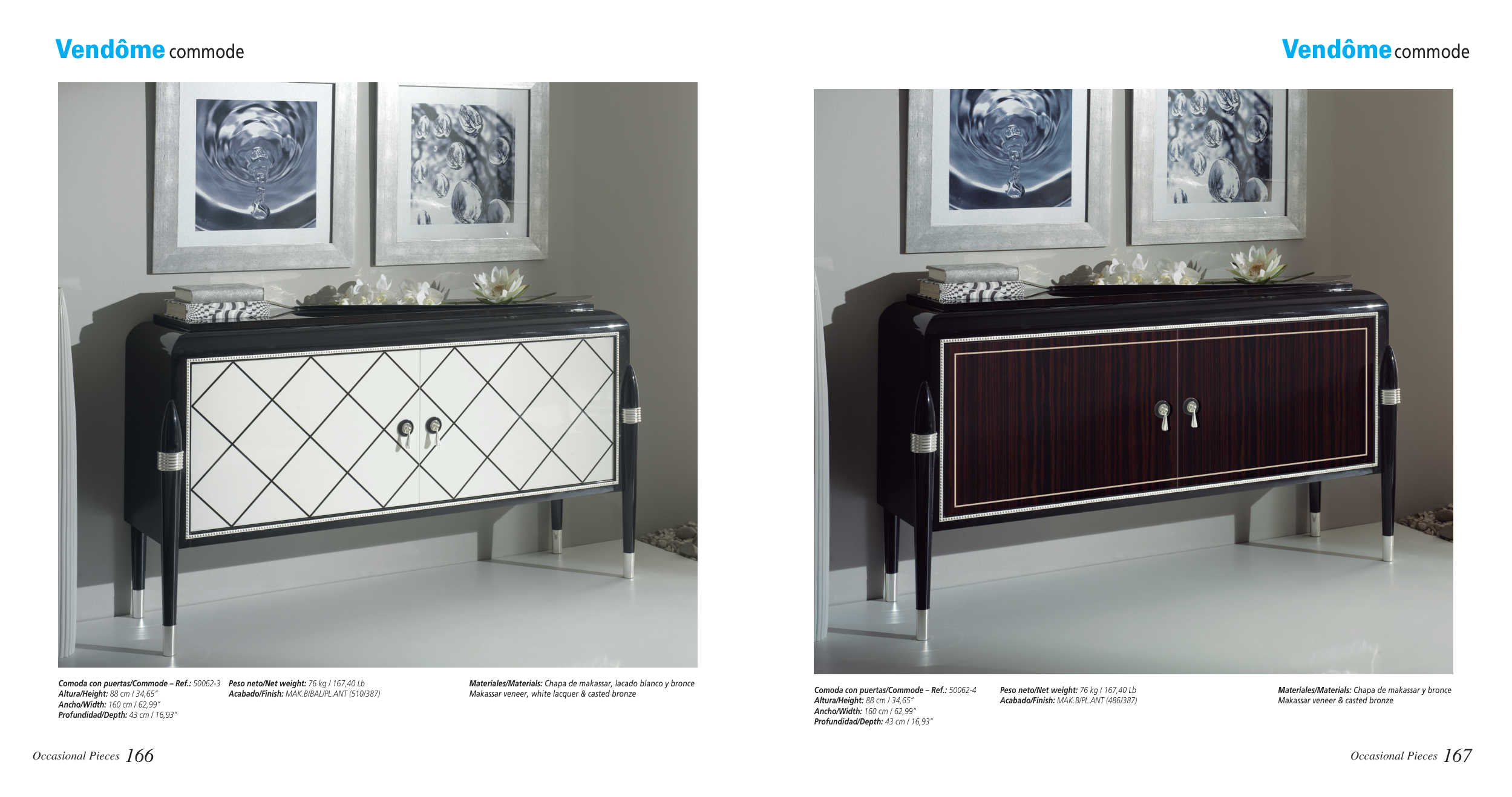 Materiales/Materials: Chapa de makassar, lacado blanco y bronce