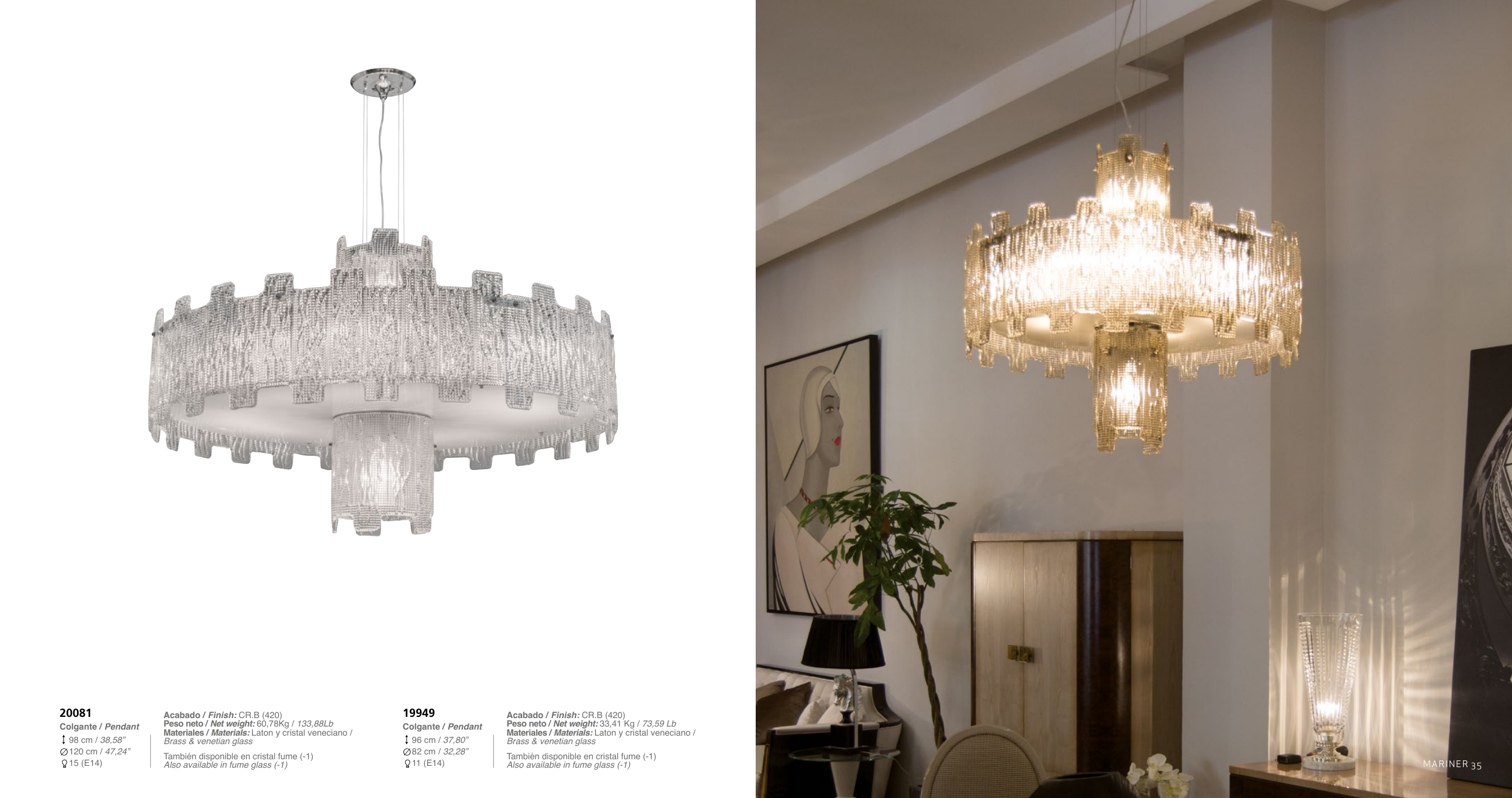 Materiales / Materials: Laton y cristal veneciano /