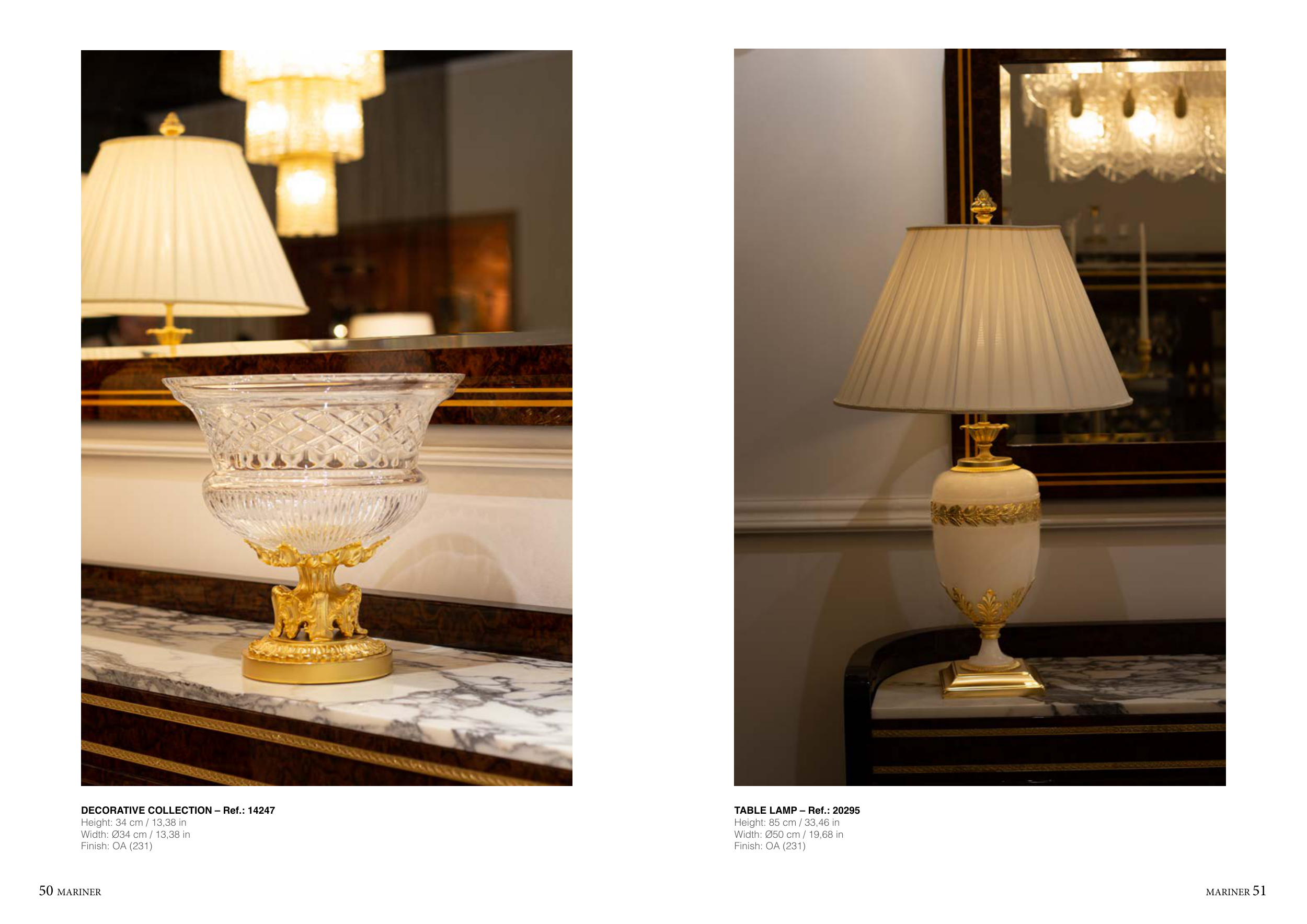 50 MARINER MARINER 51 DECORATIVE COLLECTION – Ref.: 14247 Height: 34 cm / 13,38 in Width: Ø34 cm / 13,38 in Finish: OA (231) TABLE LAMP – Ref.: 20295 Height: 85 cm / 33,46 in Width: Ø50 cm / 19,68 in Finish: OA (231)