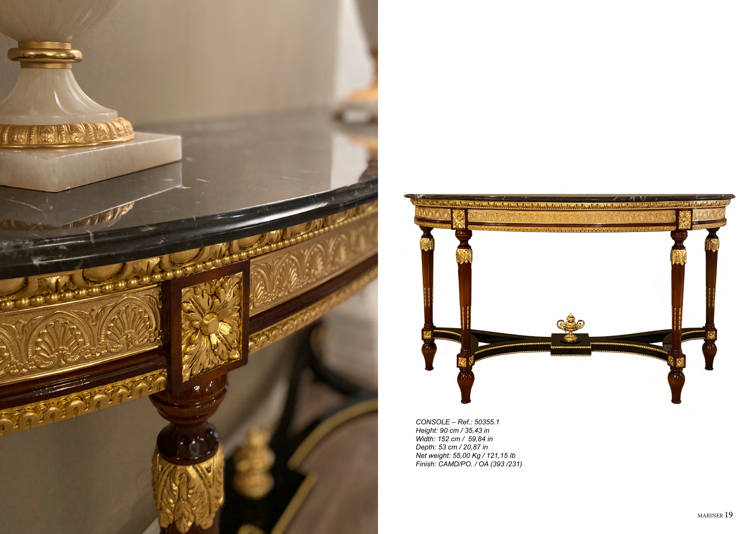 18 MARINER MARINER 19 SINGULAR PIECES COLLECTION CONSOLE – Ref.: 50355.1 Height: 90 cm / 35,43 in Width: 152 cm / 59,84 in Depth: 53 cm / 20,87 in Net weight: 55,00 Kg / 121,15 Ib Finish: CAMD/PO. / OA (393 /231)