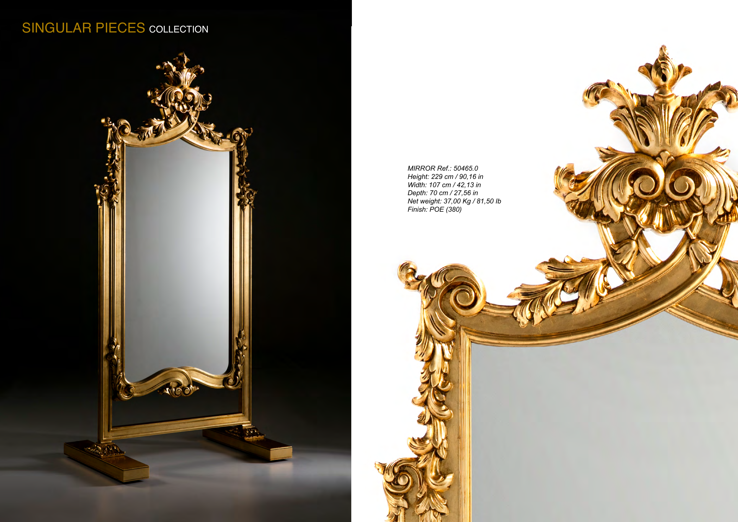 50 MARINER MARINER 51 SINGULAR PIECES COLLECTION MIRROR Ref.: 50465.0 Height: 229 cm / 90,16 in Width: 107 cm / 42,13 in Depth: 70 cm / 27,56 in Net weight: 37,00 Kg / 81,50 Ib Finish: POE (380)