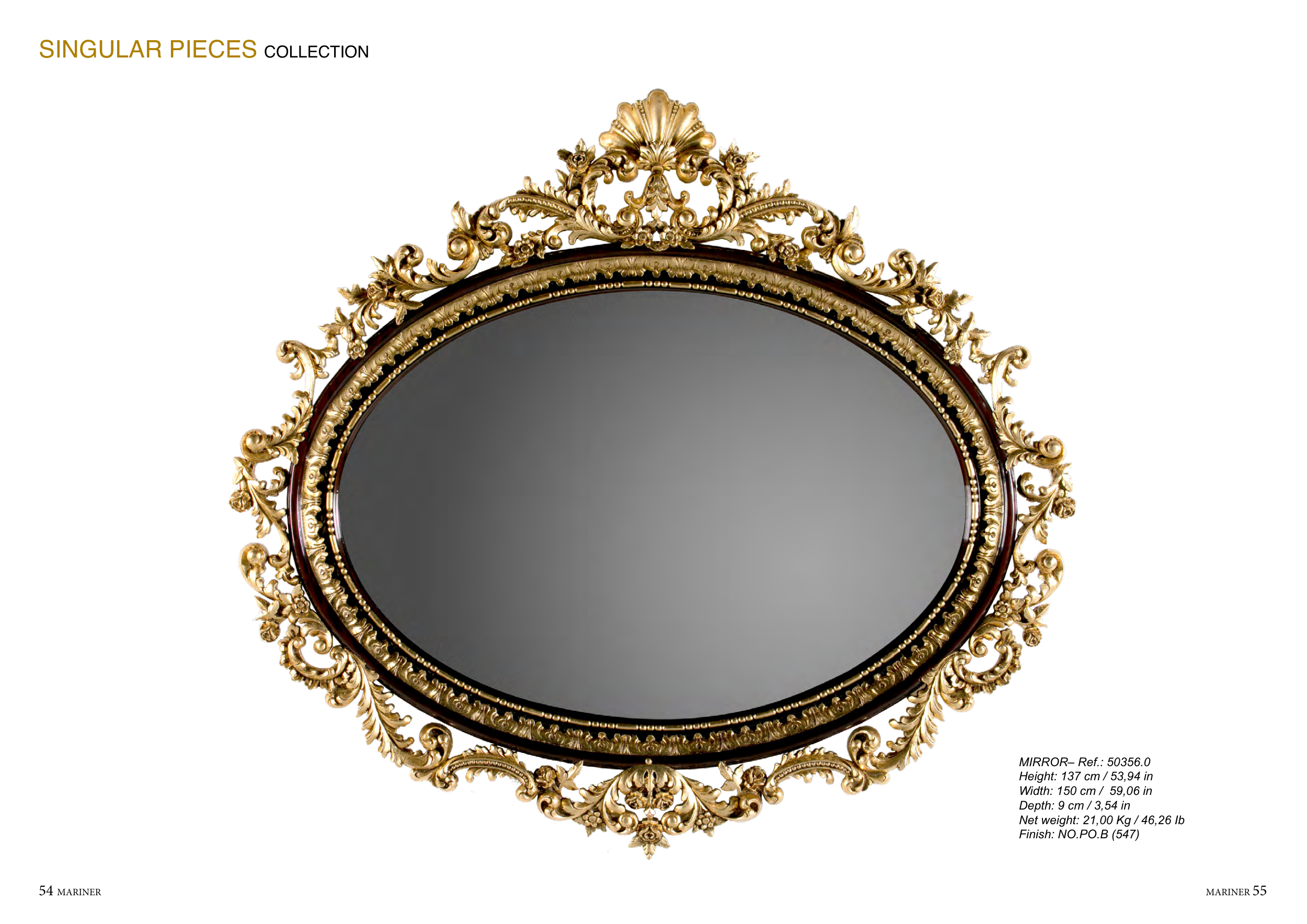 54 MARINER MARINER 55 SINGULAR PIECES COLLECTION MIRROR– Ref.: 50356.0 Height: 137 cm / 53,94 in Width: 150 cm / 59,06 in Depth: 9 cm / 3,54 in Net weight: 21,00 Kg / 46,26 Ib Finish: NO.PO.B (547)