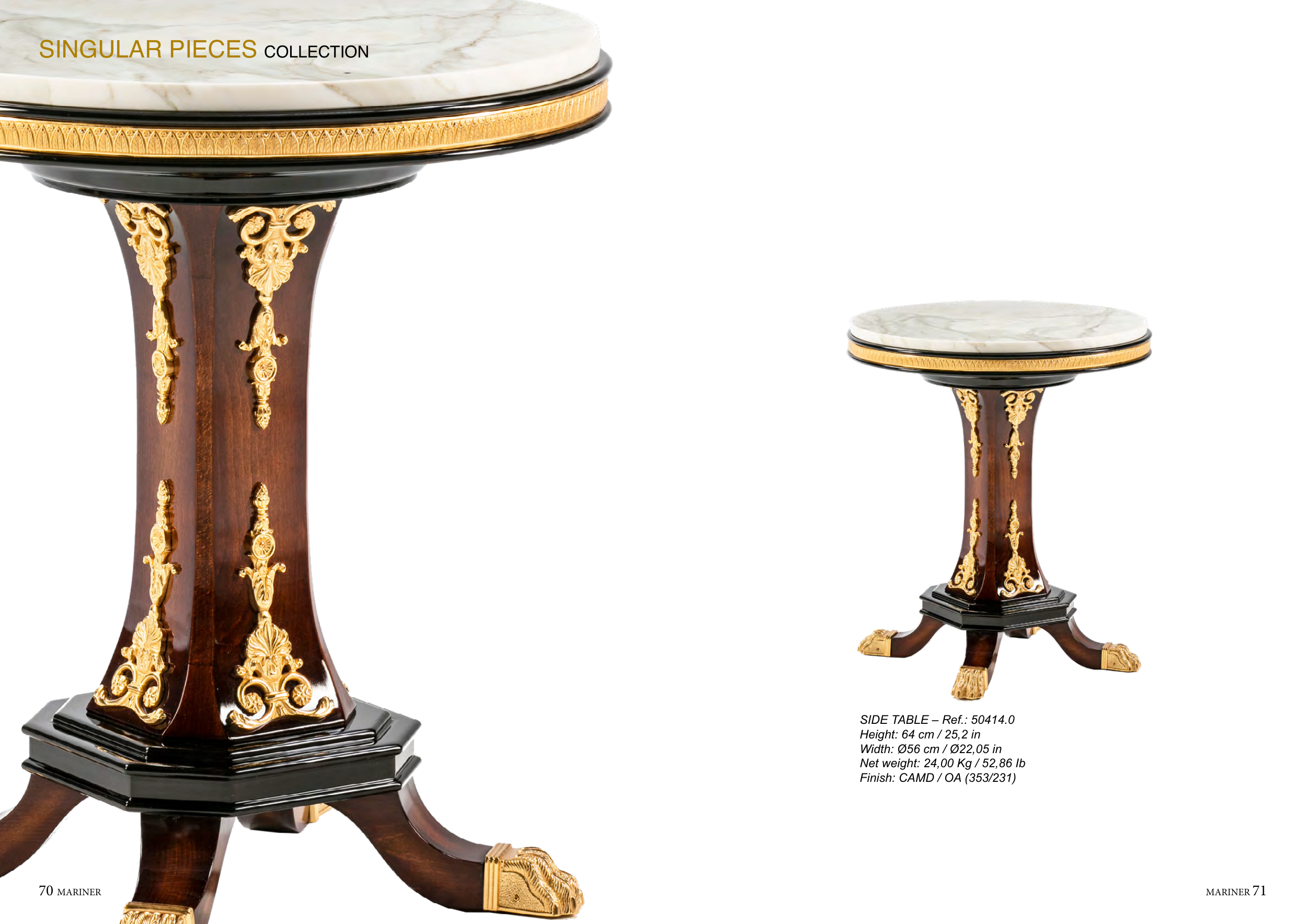 70 MARINER MARINER 71 SINGULAR PIECES COLLECTION SIDE TABLE – Ref.: 50414.0 Height: 64 cm / 25,2 in Width: Ø56 cm / Ø22,05 in Net weight: 24,00 Kg / 52,86 Ib Finish: CAMD / OA (353/231)