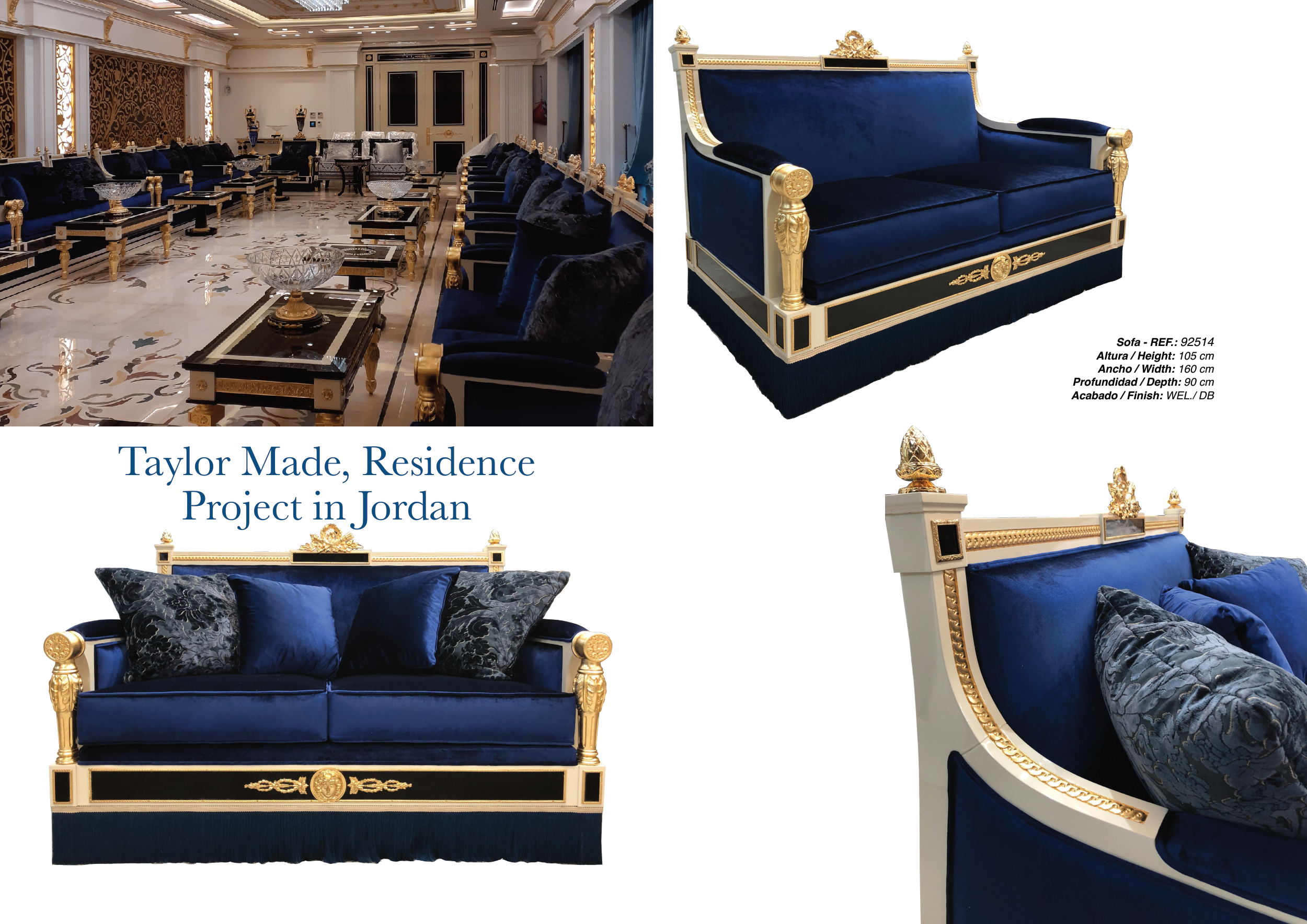 Taylor Made, Residence Project in Jordan Sofa - REF.: 92514 Altura / Height: 105 cm Ancho / Width: 160 cm Profundidad / Depth: 90 cm Acabado / Finish: WEL./ DB