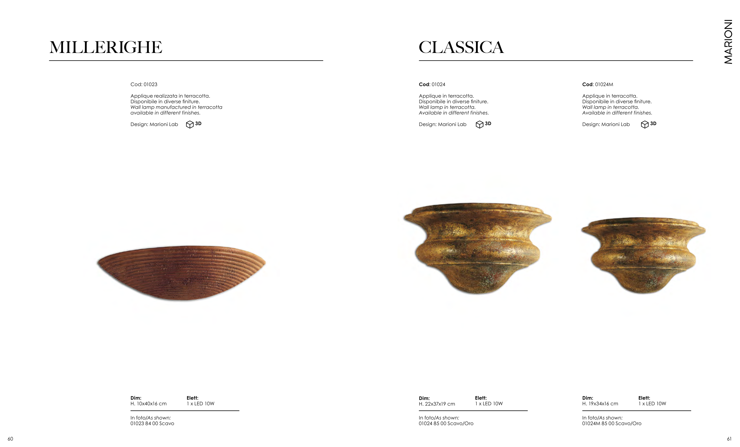 Wall lamp manufactured in terracotta