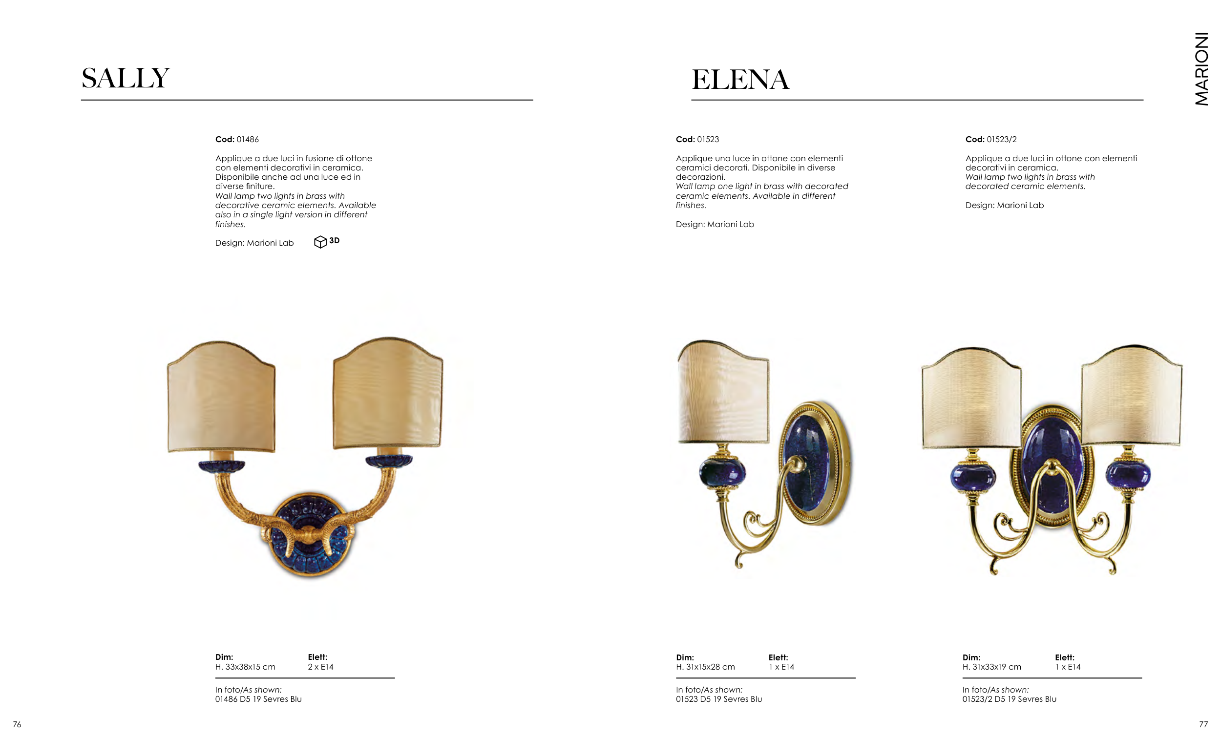 Applique a due luci in fusione di ottone