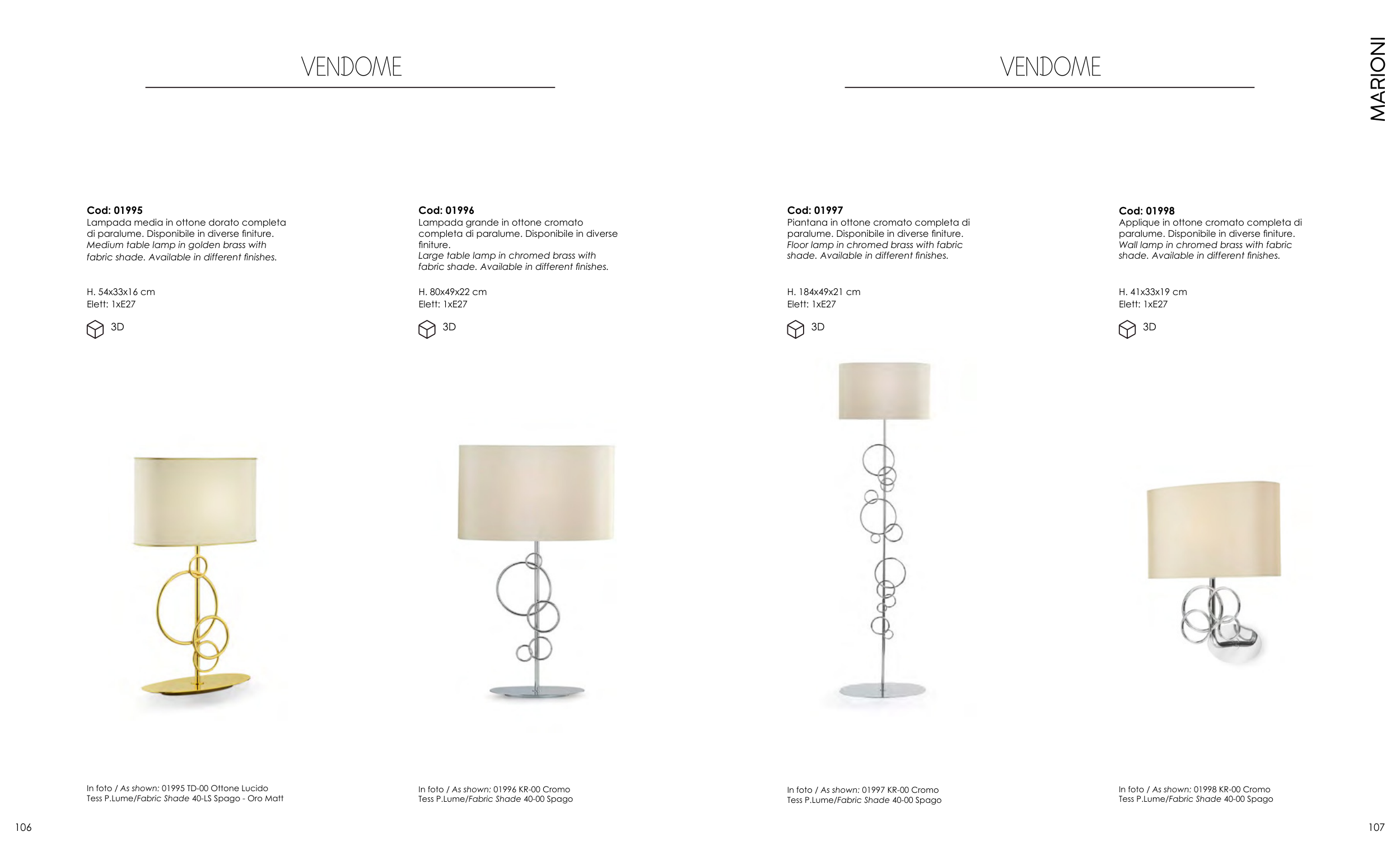 di paralume. Disponibile in diverse finiture.