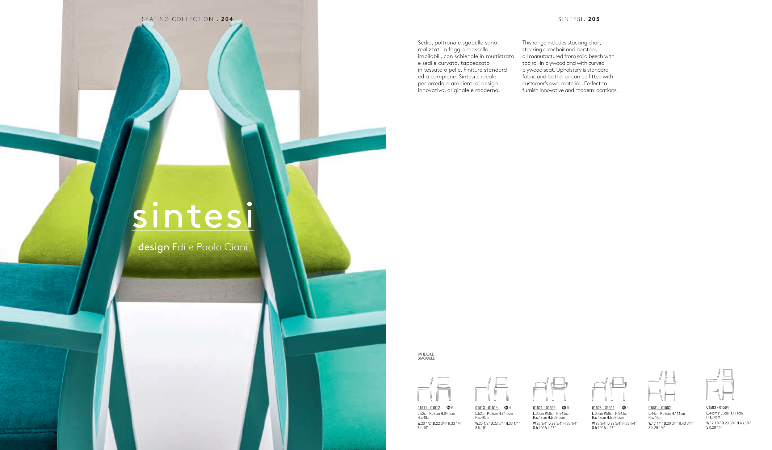 impilabili, con schienale in multistrato