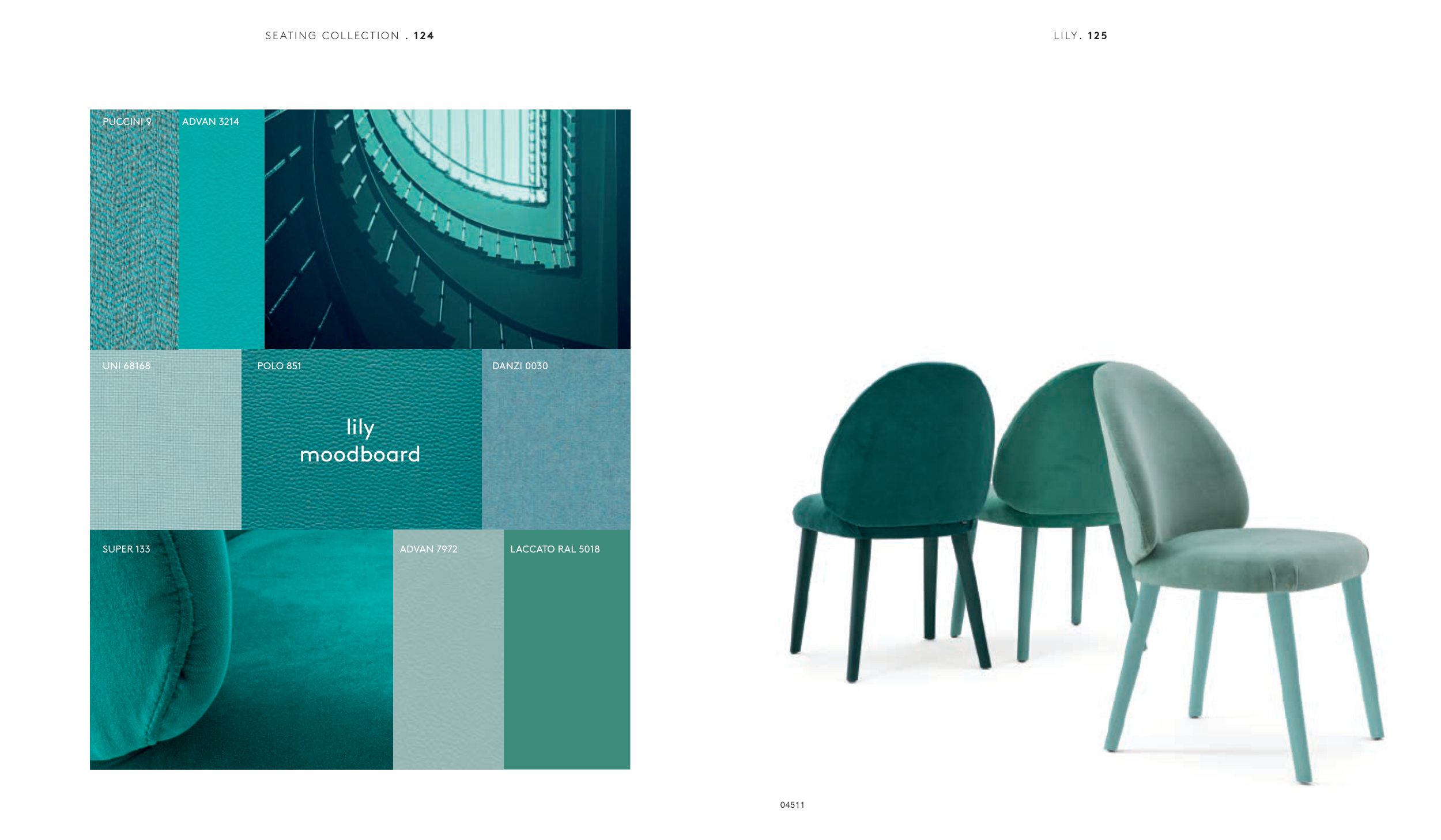 lily moodboard UNI 68168 PUCCINI 9 ADVAN 3214 SUPER 133 ADVAN 7972 LACCATO RAL 5018 POLO 851 DANZI 0030 04511 SE AT I N G C O L L EC T I O N . 1 24 L I LY . 1 25