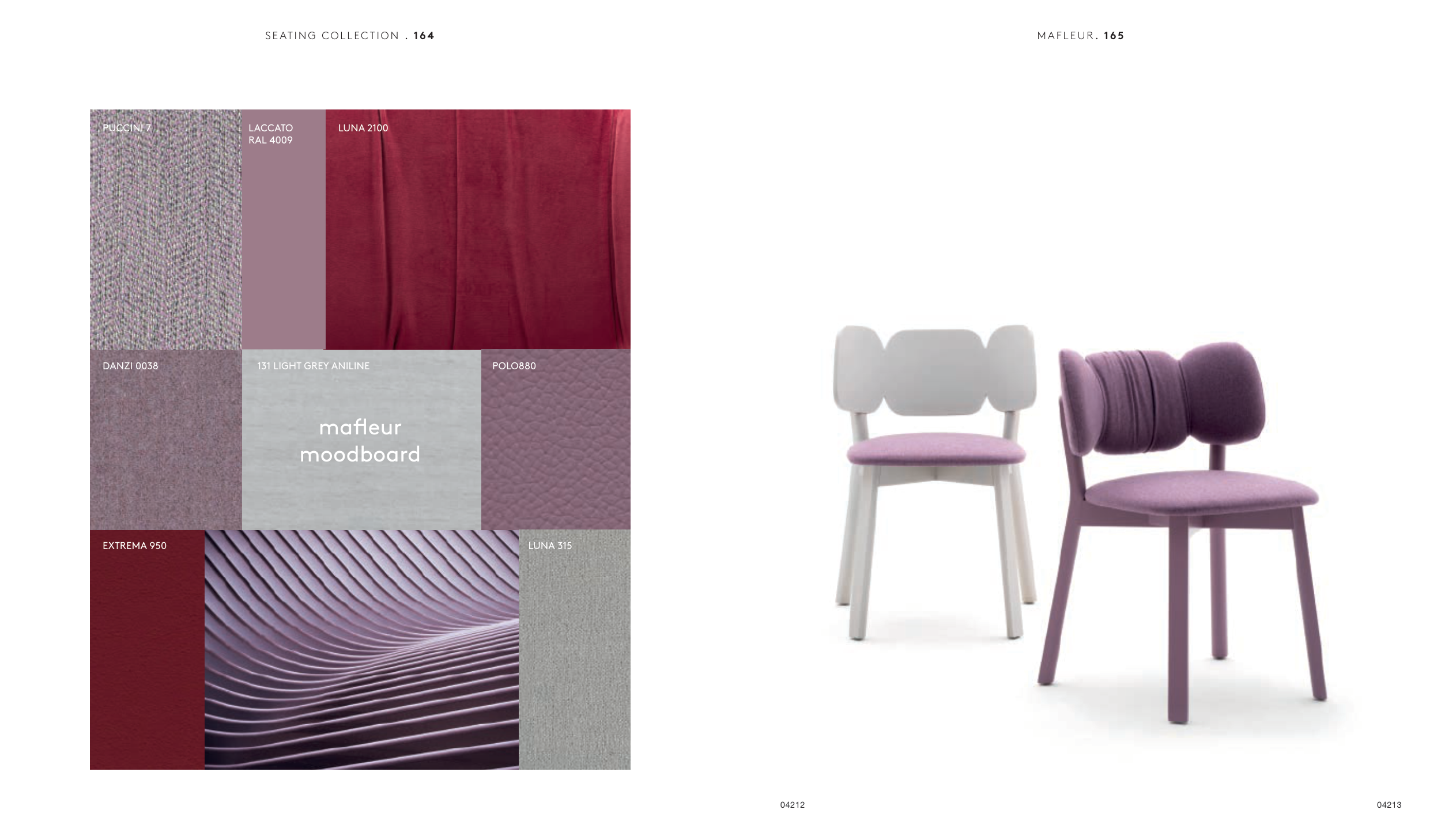 mafleur moodboard DANZI 0038 EXTREMA 950 LUNA 315 PUCCINI 7 LACCATO RAL 4009 LUNA 2100 131 LIGHT GREY ANILINE POLO880 04212 SE AT I N G C O L L EC T I O N . 1 6 4 M A F L E U R . 1 65 04213