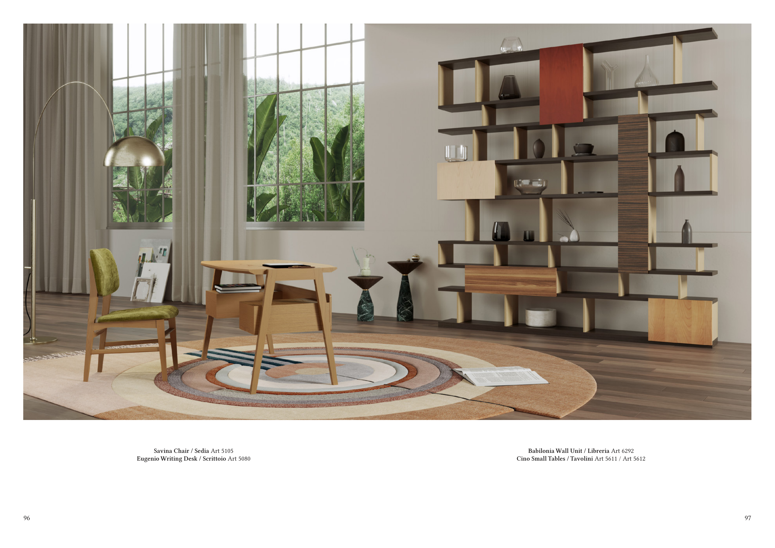 97 96 Savina Chair / Sedia Art 5105 Eugenio Writing Desk / Scrittoio Art 5080 Babilonia Wall Unit / Libreria Art 6292 Cino Small Tables / Tavolini Art 5611 / Art 5612