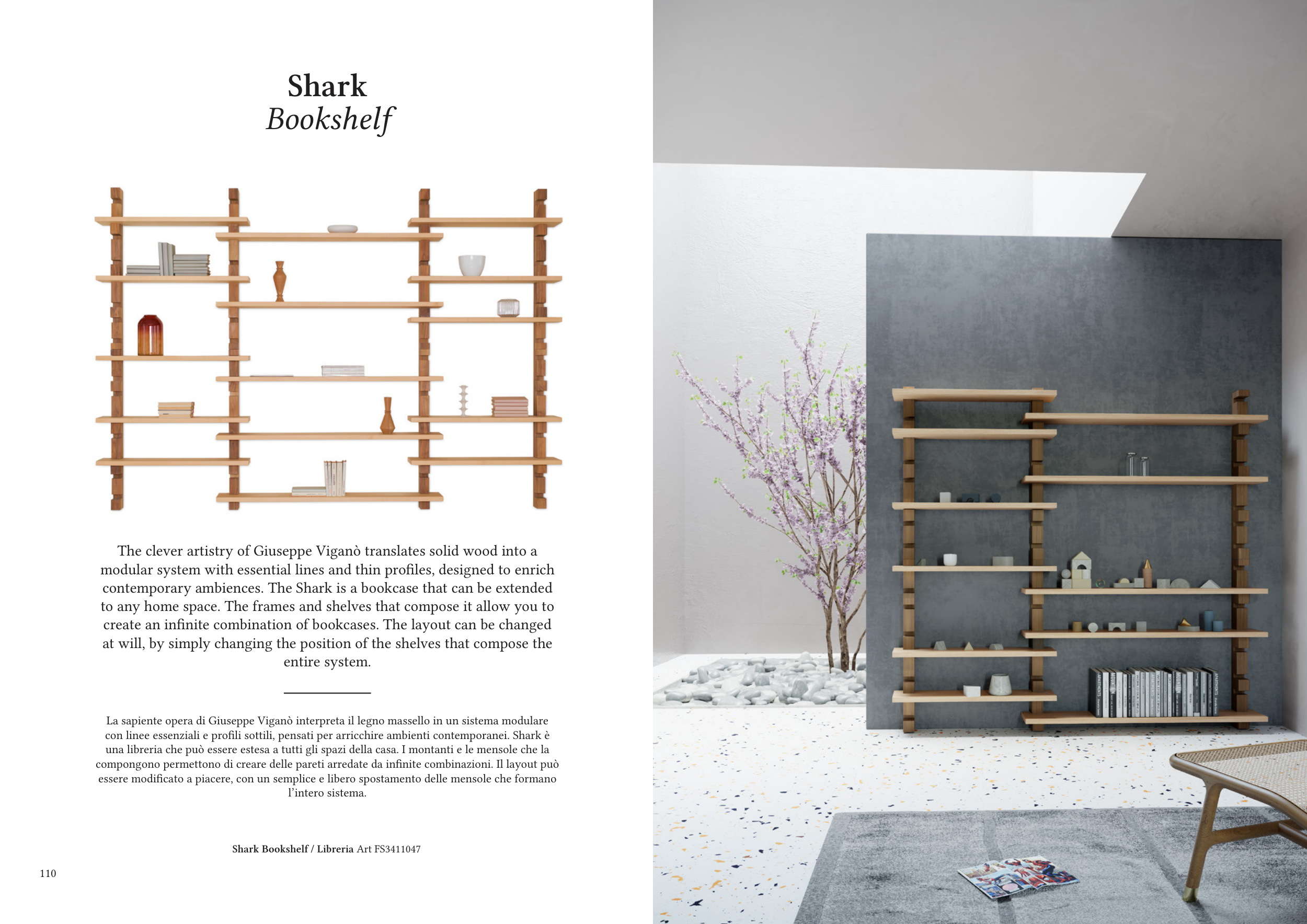 contemporary ambiences. The Shark is a bookcase that can be extended