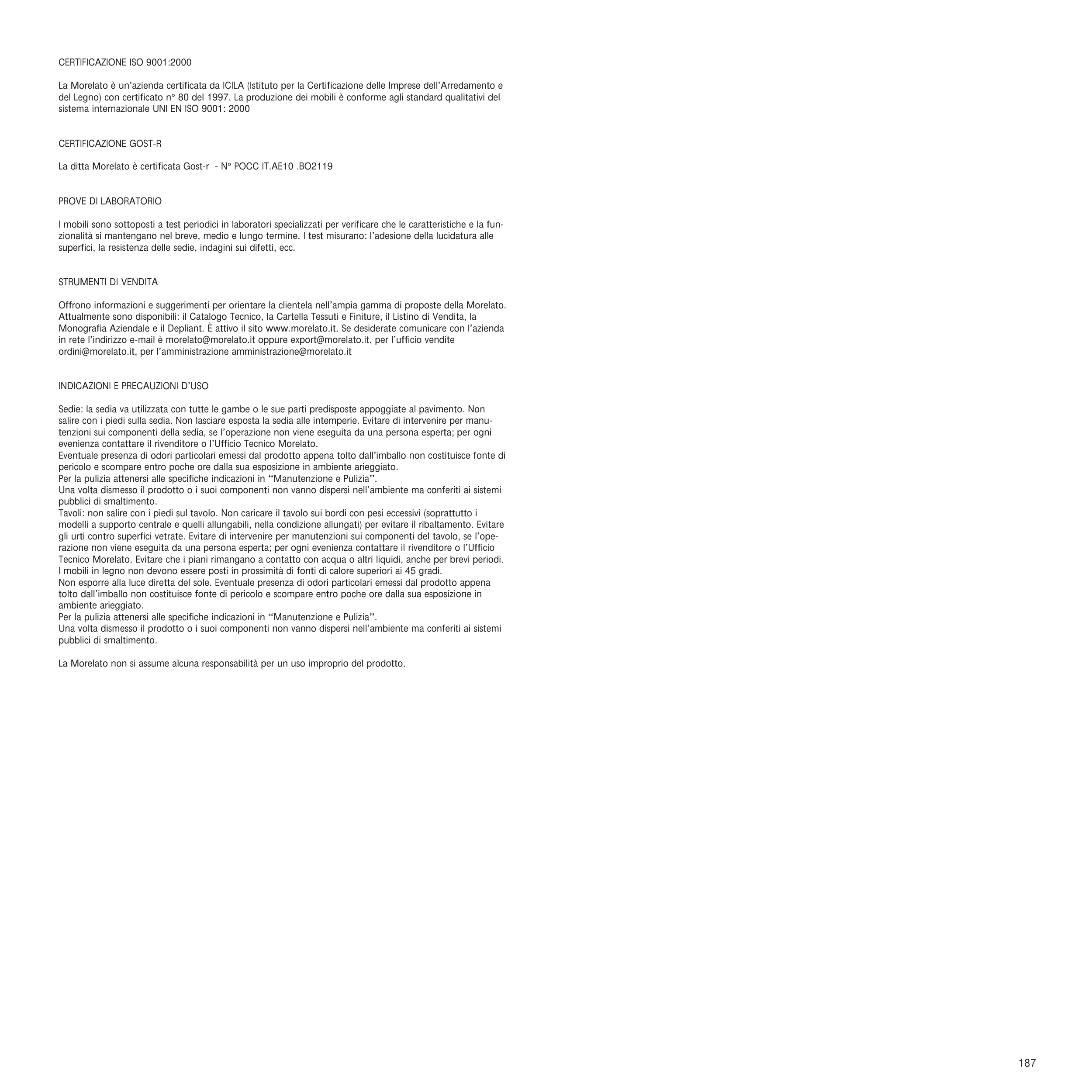 Monografia Aziendale e il Depliant. È attivo il sito www.morelato.it. Se desiderate comunicare con l’azienda