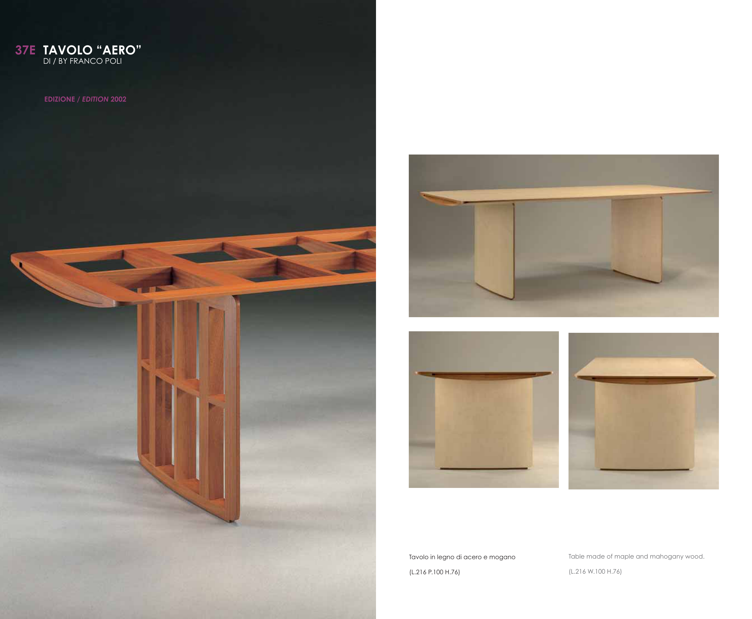 DI / BY FRANCO POLI EDIZIONE / EDITION 2002 Tavolo in legno di acero e mogano ������������������ �������������������������������������� ������������������