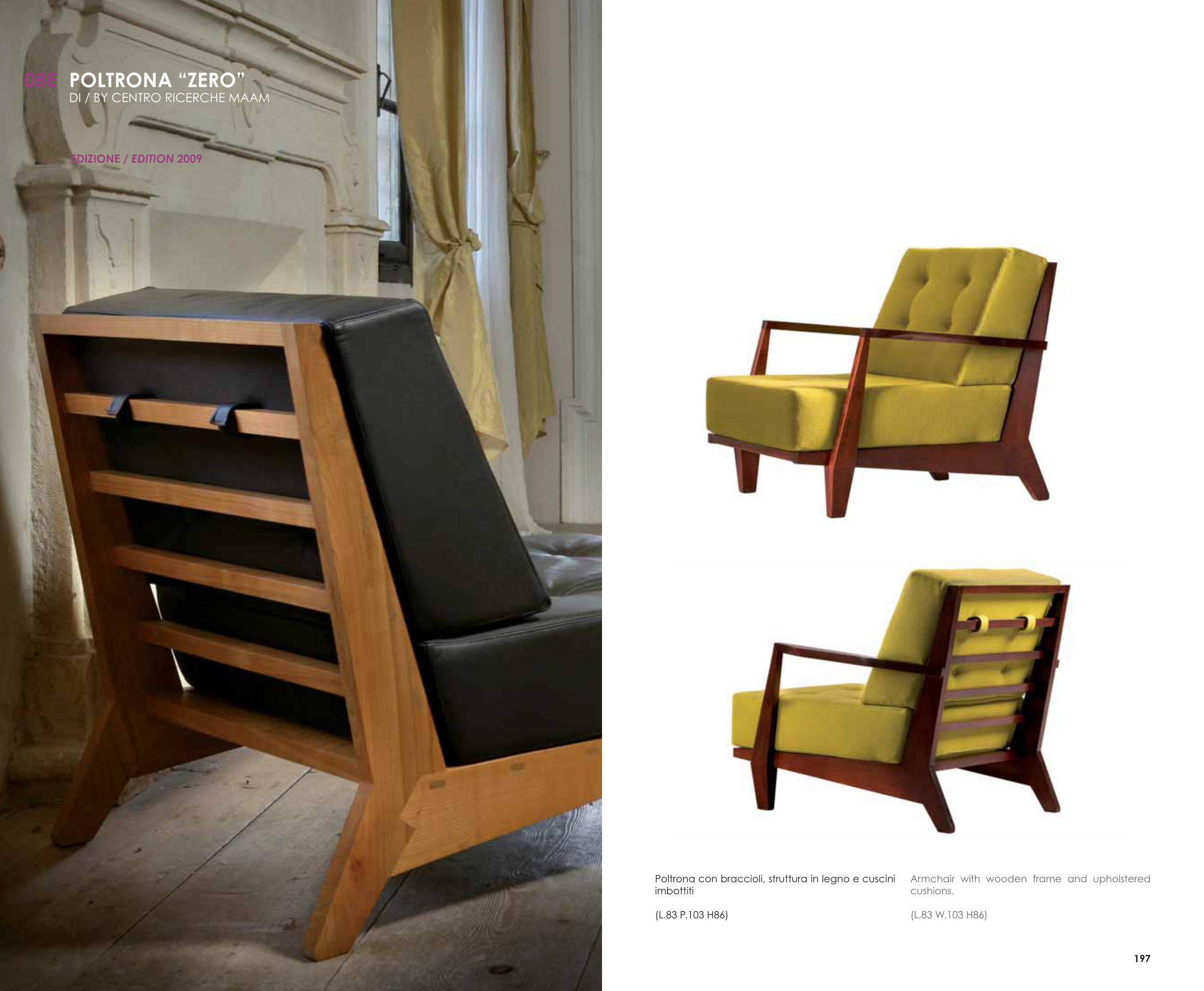 DI / BY CENTRO RICERCHE MAAM EDIZIONE / EDITION 2009 Poltrona con braccioli, struttura in legno e cuscini imbottiti ���������������� ��������� ����� ������� ������ ���� ������������ ��������� ����������������