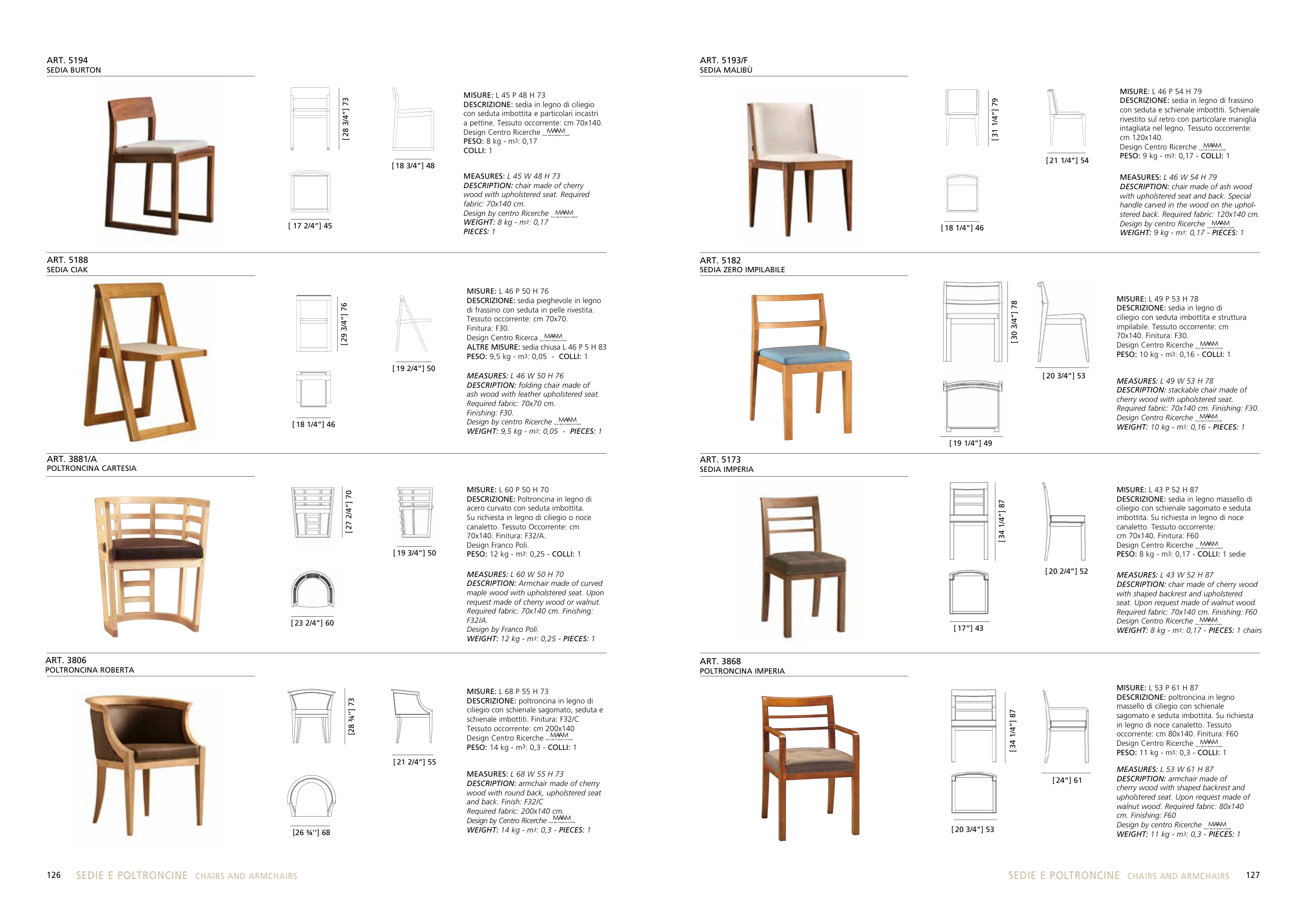 PESO: 8 kg - m3: 0,17 - COLLI: 1 sedie