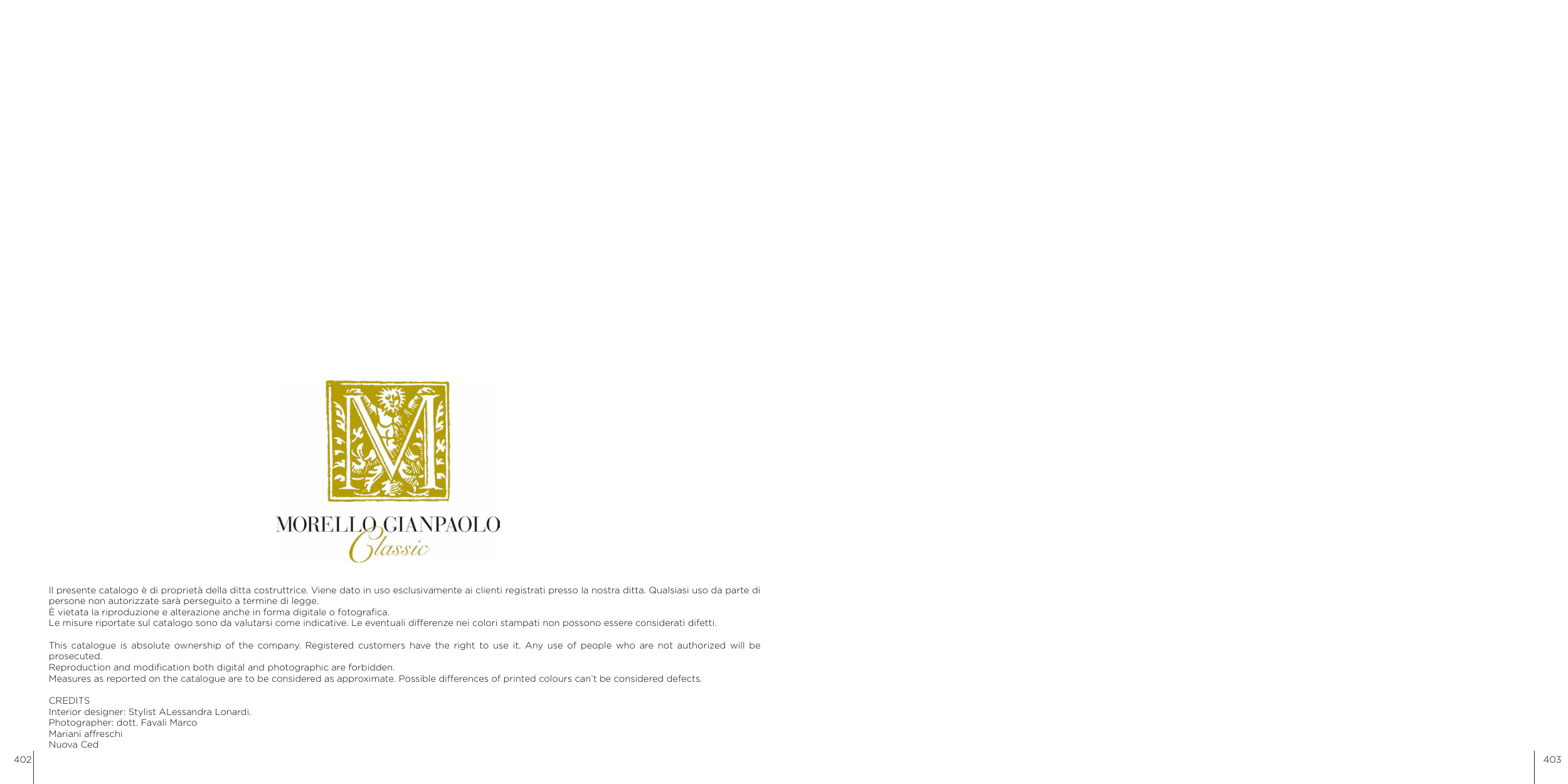 Measures as reported on the catalogue are to be considered as approximate. Possible differences of printed colours can’t be considered defects.