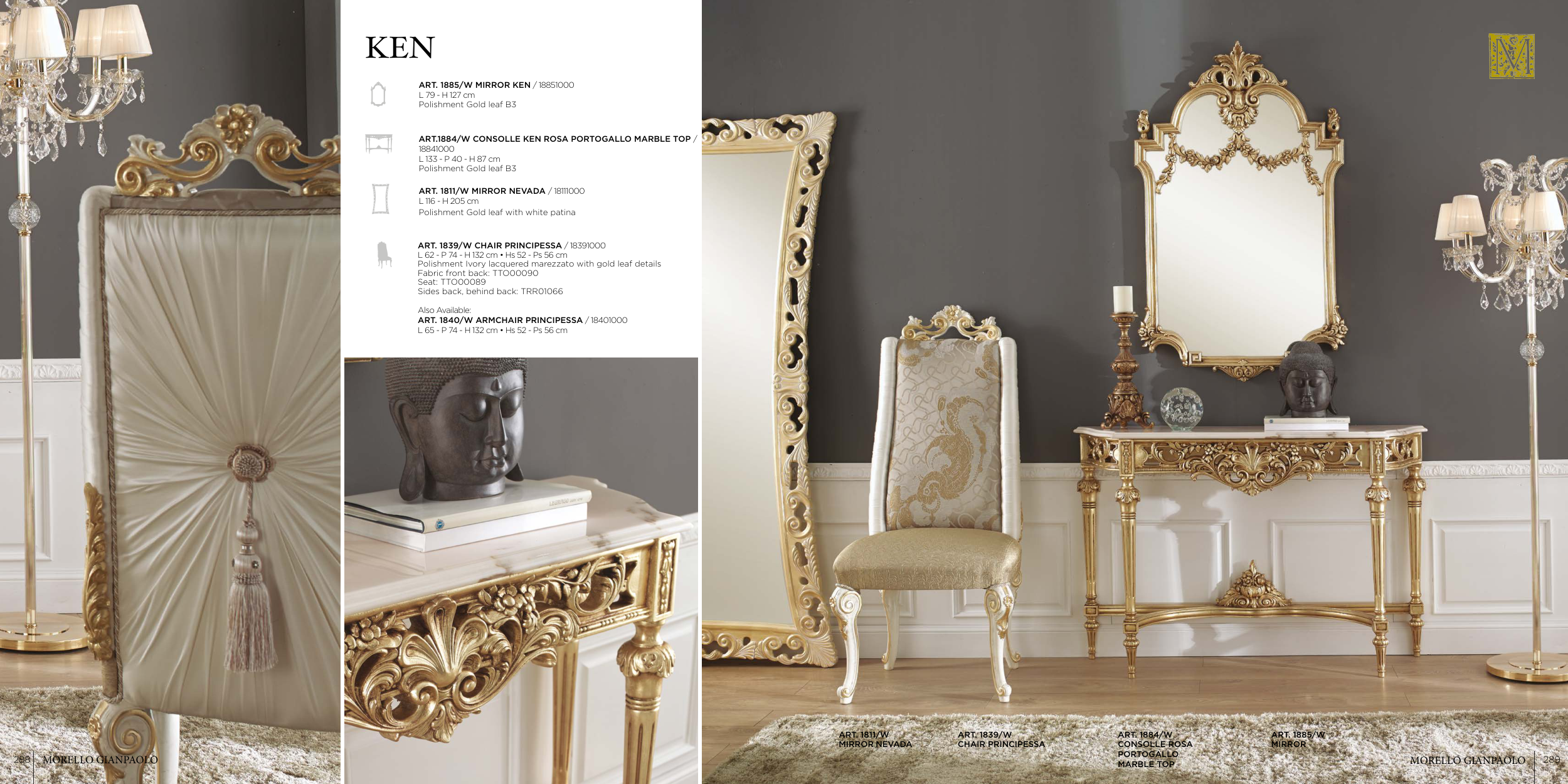 Polishment Ivory lacquered marezzato with gold leaf details