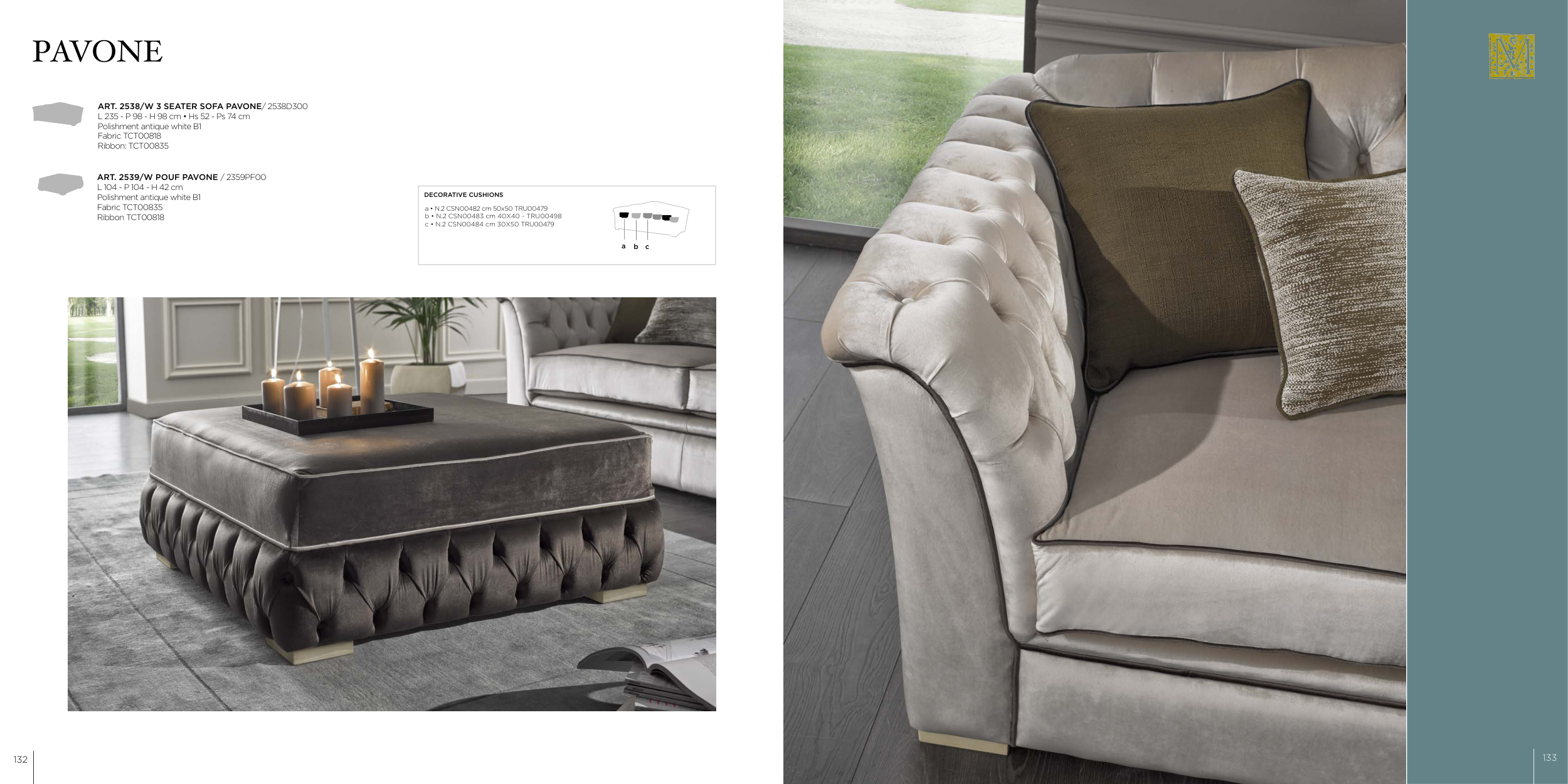 ART. 2538/W 3 SEATER SOFA PAVONE/ 2538D300
