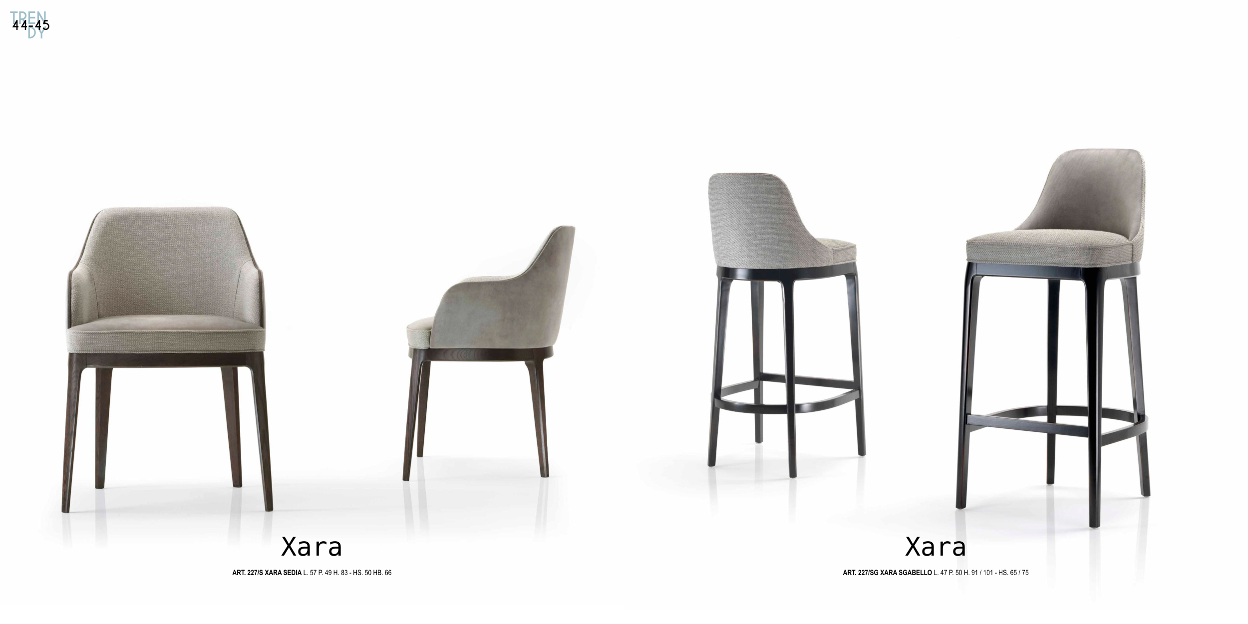 Xara Xara CONTROLLARE ART. E MISURE ART. 227/S XARA SEDIA L. 57 P. 49 H. 83 - HS. 50 HB. 66 ART. 227/SG XARA SGABELLO L. 47 P. 50 H. 91 / 101 - HS. 65 / 75 TREN DY 44-45