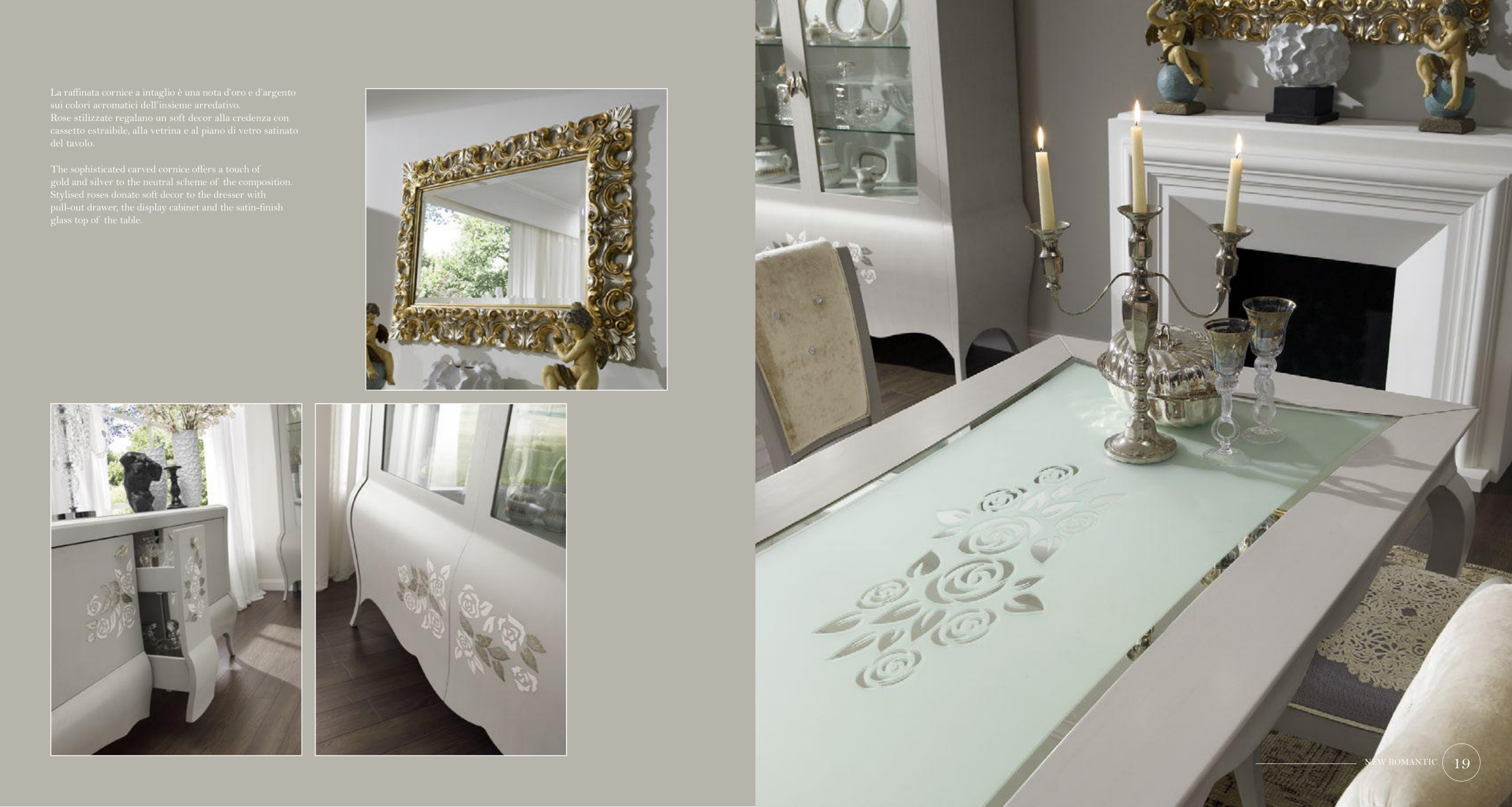 La raffinata cornice a intaglio è una nota d’oro e d’argento