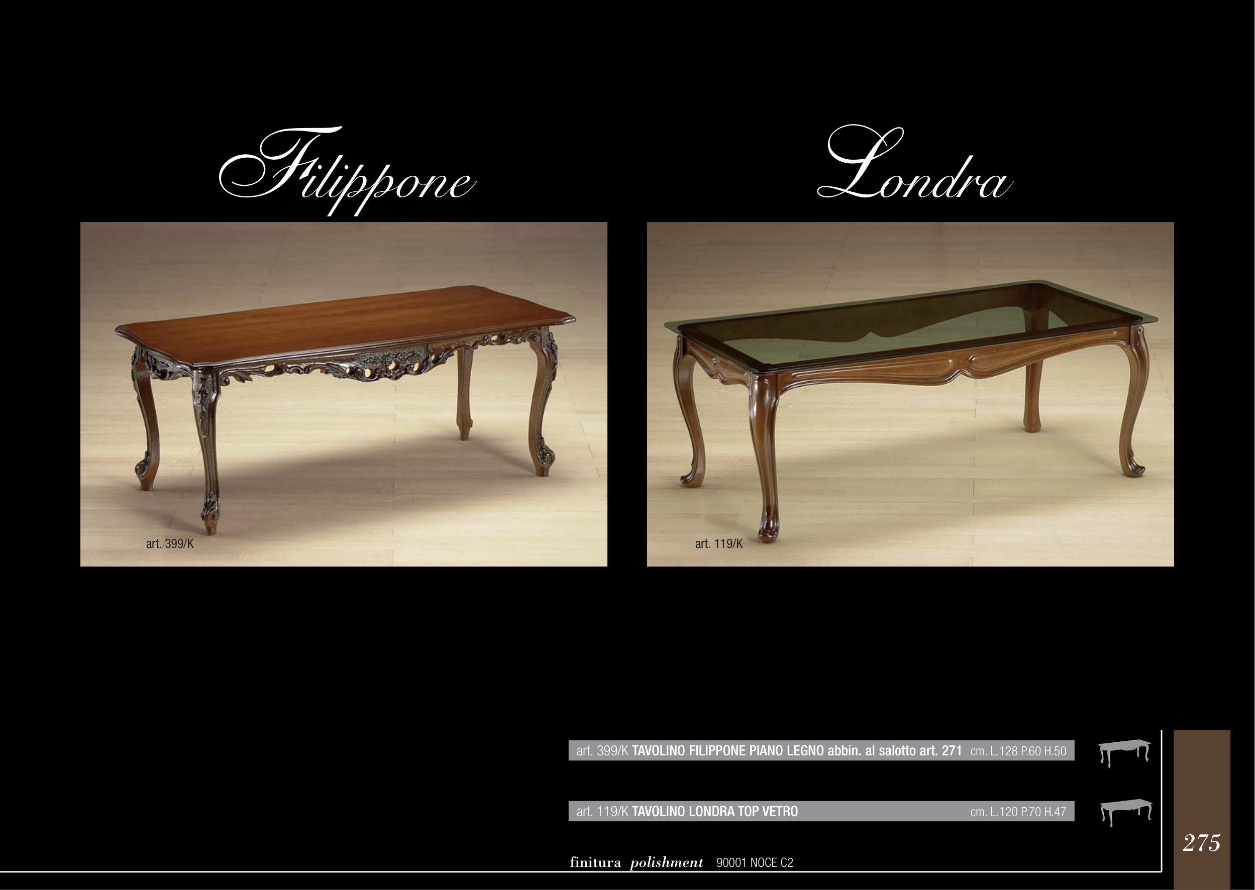 art. 399/K TAVOLINO FILIPPONE PIANO LEGNO abbin. al salotto art. 271 cm. L.128 P.60 H.50