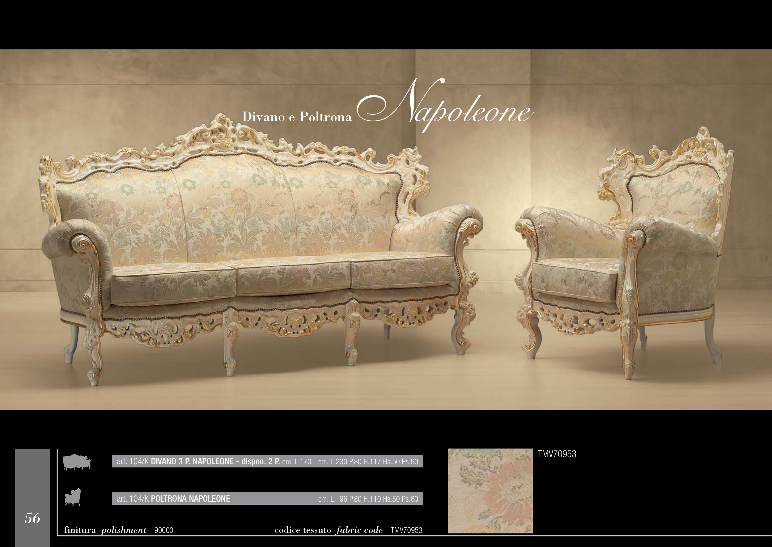 art. 104/K DIVANO 3 P. NAPOLEONE - dispon. 2 P. cm. L.170 cm. L.230 P.80 H.117 Hs.50 Ps.60