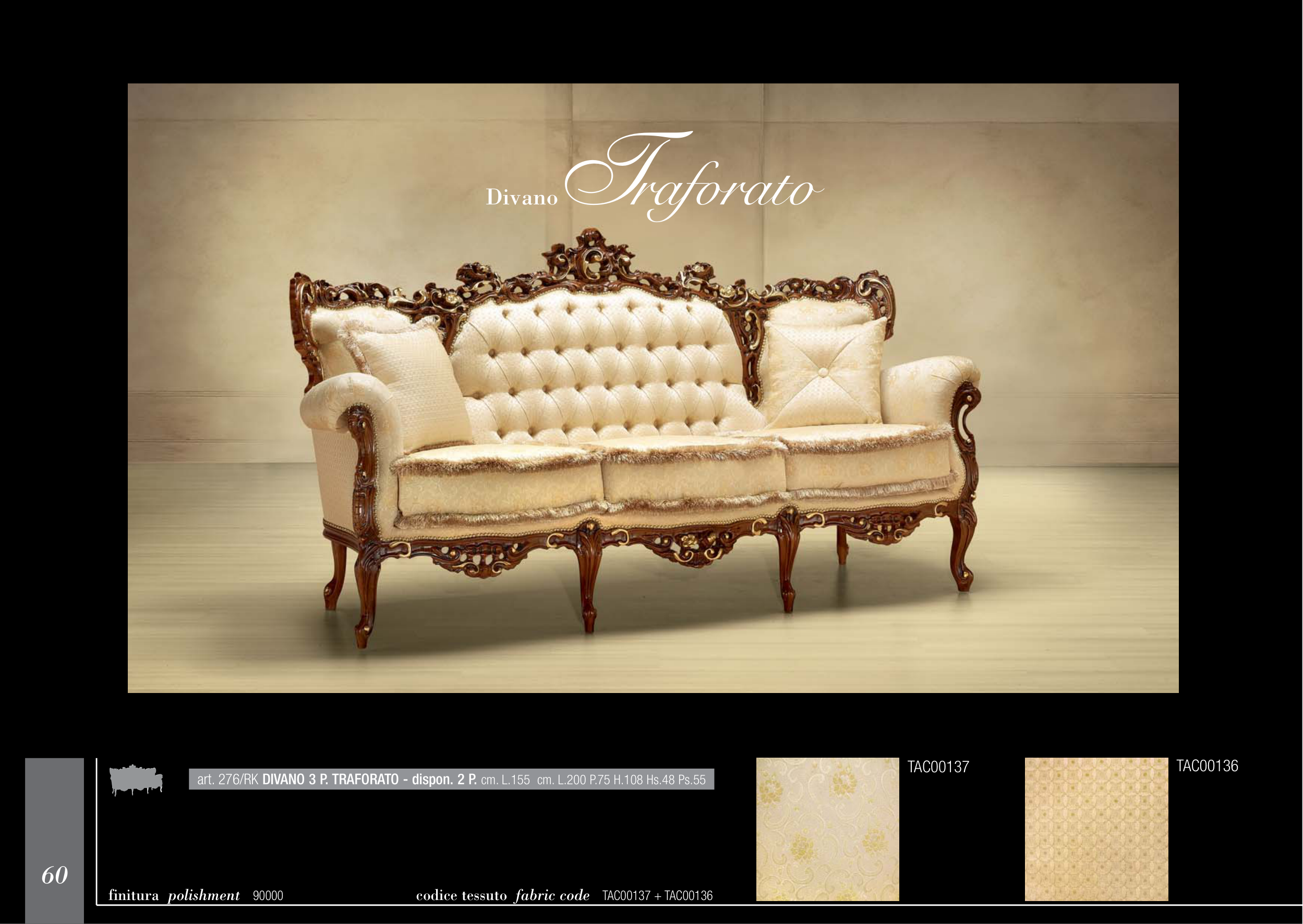 art. 276/RK DIVANO 3 P. TRAFORATO - dispon. 2 P. cm. L.155 cm. L.200 P.75 H.108 Hs.48 Ps.55