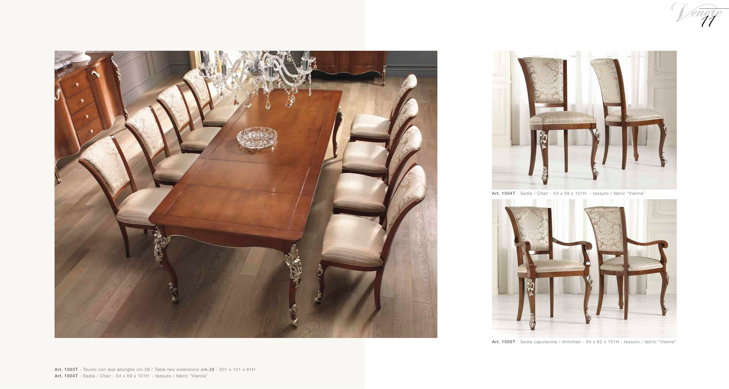 Art. 1005T - Sedia capotavola / Armchair - 64 x 62 x 101H - tessuto / fabric “Vienna”