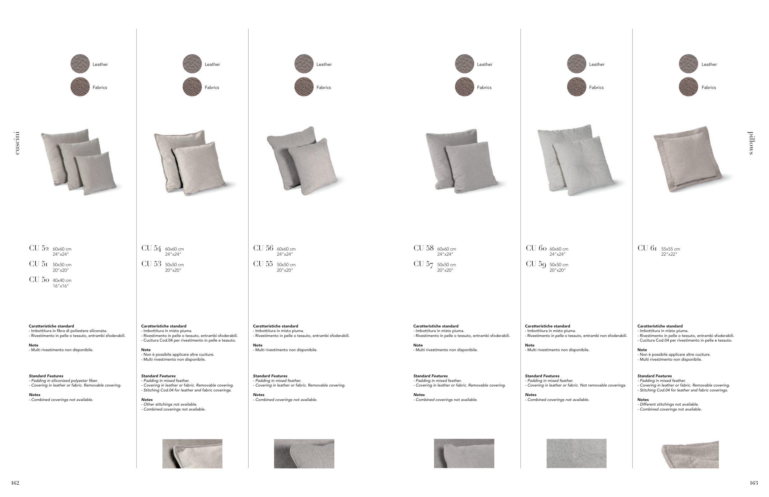 - Rivestimento in pelle o tessuto, entrambi sfoderabili.