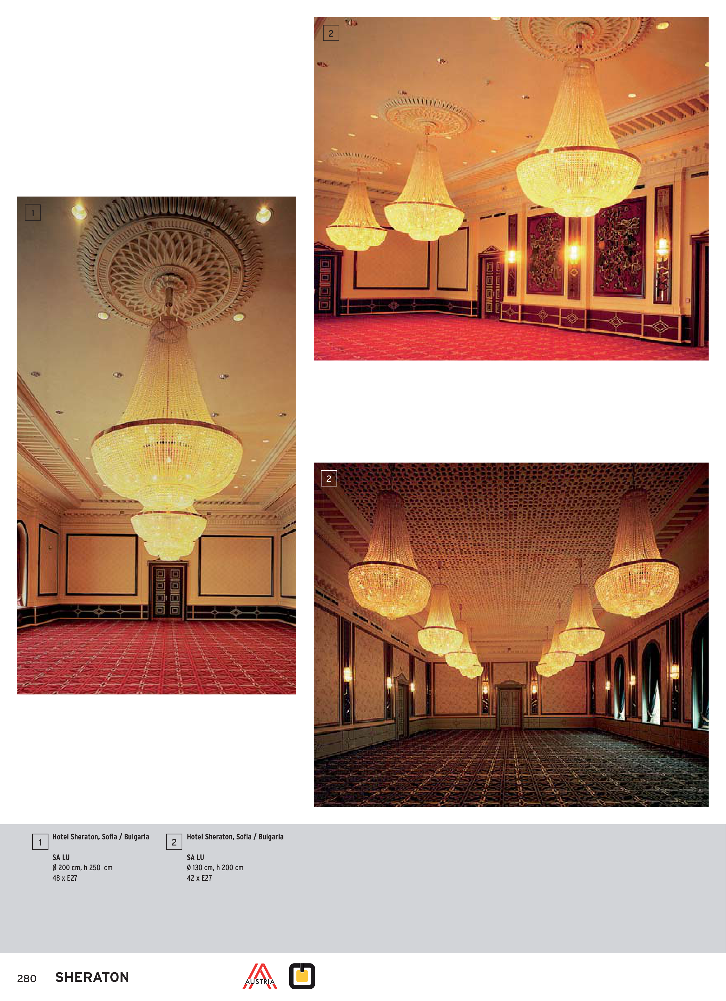 280 1 2 SHERATON 1 2 2 Hotel Sheraton, Sofi a / Bulgaria SA LU Ø 200 cm, h 250 cm 48 x E27 Hotel Sheraton, Sofi a / Bulgaria SA LU Ø 130 cm, h 200 cm 42 x E27