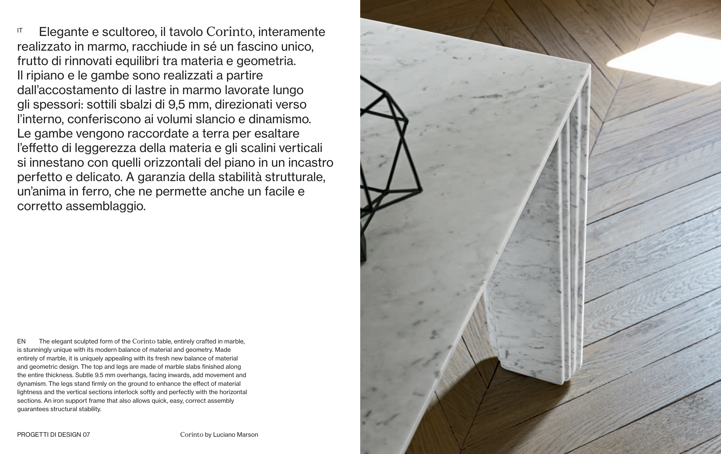 Elegante e scultoreo, il tavolo Corinto, interamente